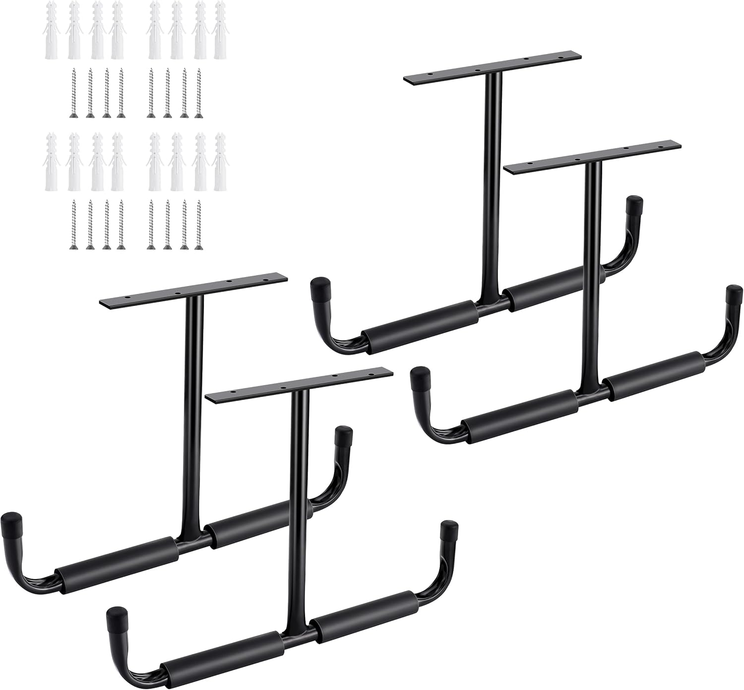 Sinoer Garage Ceiling Storage Hooks,Wall Mounted Hooks, Heavy Duty Utility Hooks for Ladder,Bike,Wood, Tools & Other Bulky Items (4 Pack, Black)