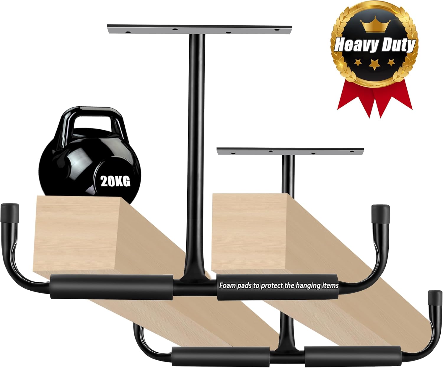 - The Heavy-Duty Ceiling Hook is designed to provide a convenient storage solution for a variety of items, including extension ladders, tools, fishing rods, lumbers,heavy wood,long boards,yard tools,fishing rods,wood, bicycles, garden hoses, exercise gadgets,and more.