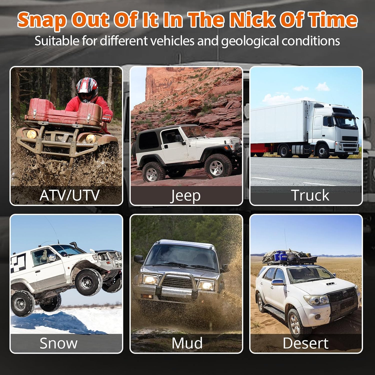 - 【Thicker Heavy Duty Elastic Straps Towing Gear】1INCH UPGRADE TO 1-1/8 INCH ROPE,more durable and higher strength.Actual tested and certified up to 48000 lbs breaking strength.45% more efficient than wire winch ropes, storing four times the energy of a tow strap. Capable of recovering and towing vehicles of all sizes and types including Jeeps, SUVs, ATVs, trucks, tractors, pickups, small vehicles and more