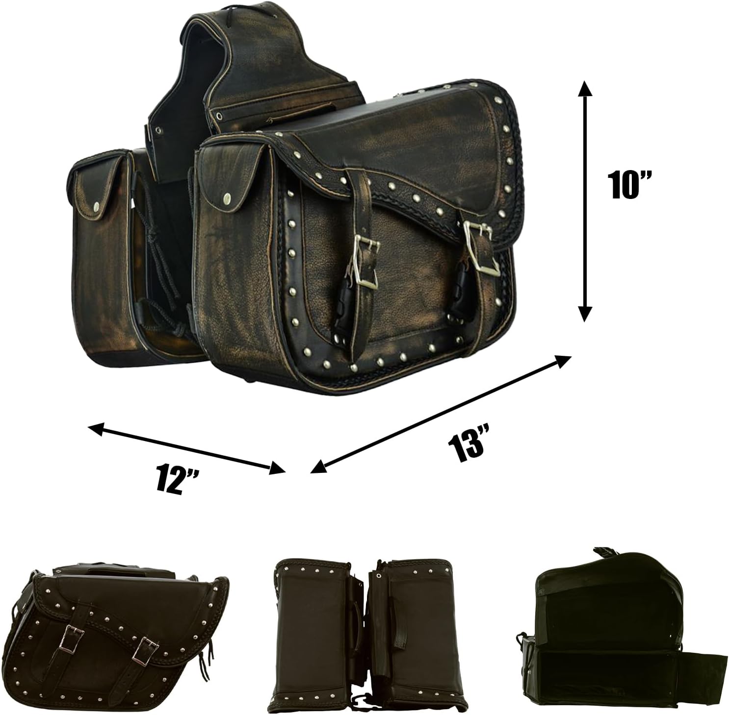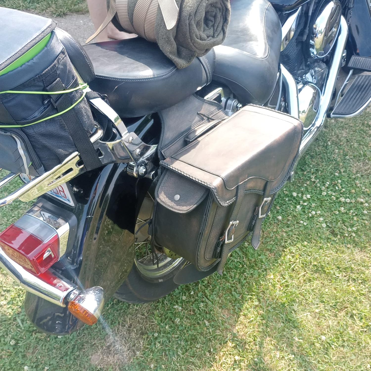 • 【Leather Material】This motorcycle saddlebags is made up of soft and durable heavy-duty leather. The reinforced sewing and moderate thickness make our motorcycle saddle bag can always keep its shape and longer service life.
