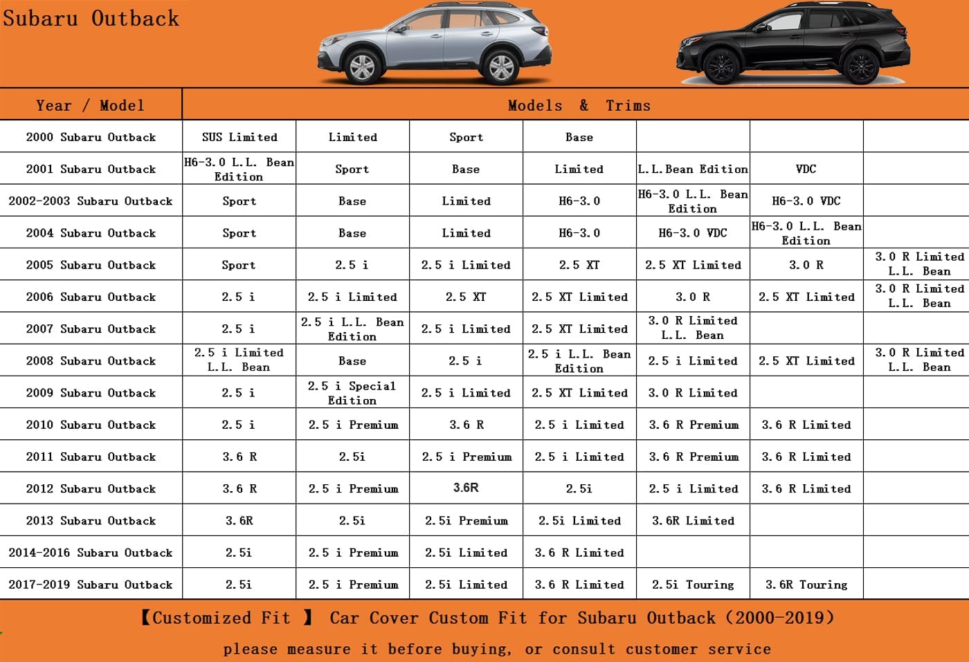 - 【Suitable for】— Custom fit for Subaru Outback (1994-2025). Come with a large enough portable bag to store your cover when you do not use
