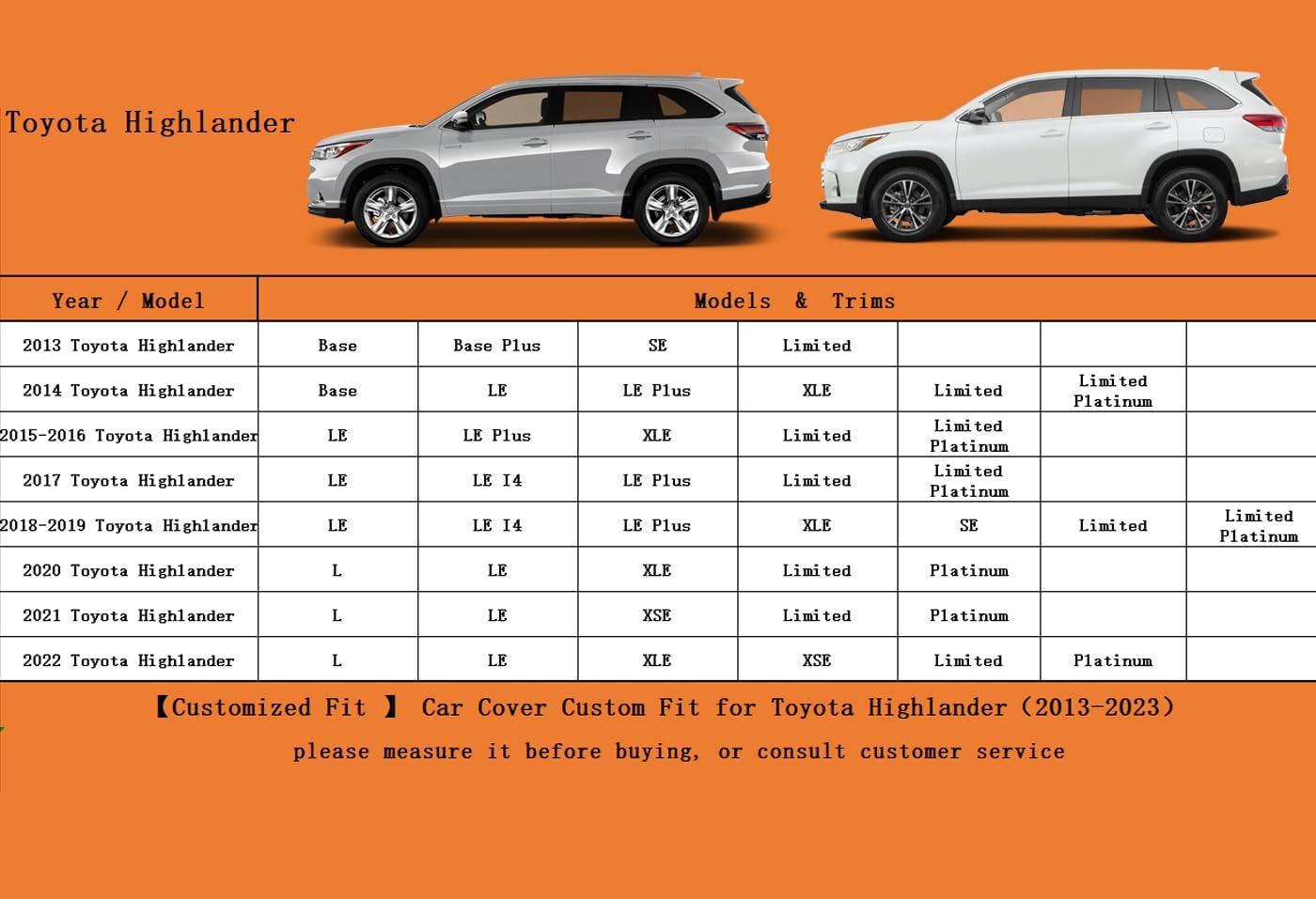 - 【Suitable for】— Custom fit for Toyota Highlander (2013-2025). Come with a large enough portable bag to store your cover when you do not use