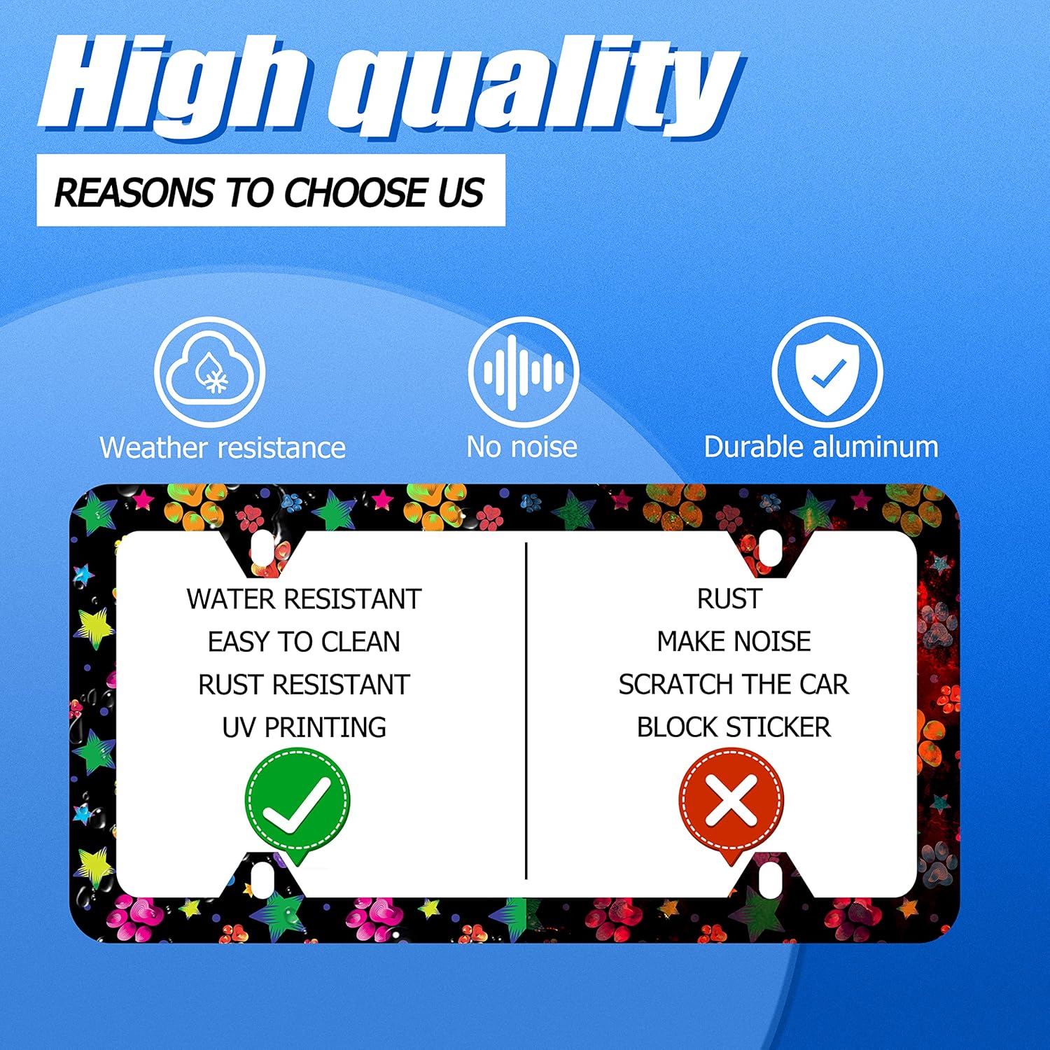 Colorful Animal Paw and Star License Plate Frame Colorful License Plate Stainless Steel Parts Funny License Plate Decorative with Screws Size 12.3" x 6.3" for Men Women