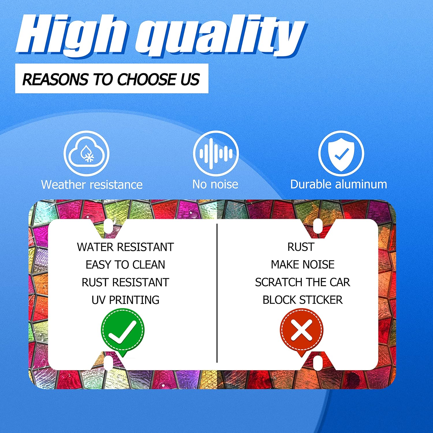 Pretty Cut Glass License Plate Frame Colorful License Plate Stainless Steel Parts Funny License Plate Decorative with Screws Size 12.3" x 6.3" Men Women