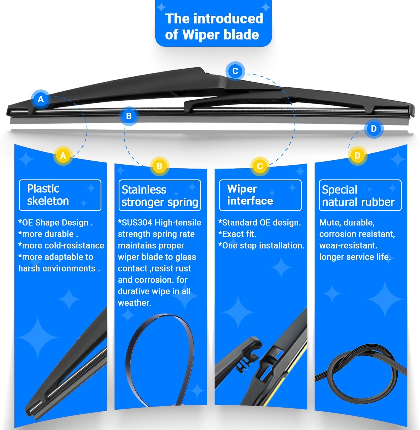 - {WIPER PERFORMANCE}: Natural rubber material making sure the wiping is the best, quiet wiping without judder or squeaking, resistant and a long service life.