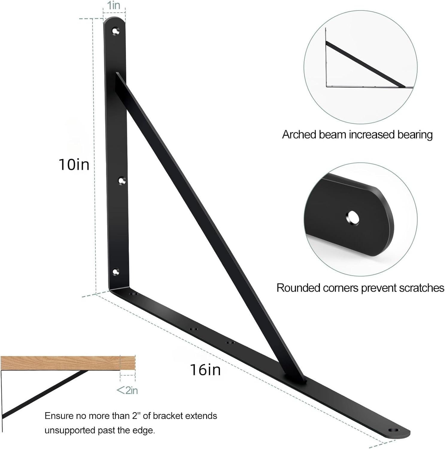 - Size:L 16" x H 10" x W 1", 3mm Thick. Package included: 6 x Brackets , 18 x long Screws, 24 x short Screws(Wood plank is Not included)Our floating shelf brackets come with 6 brackets for your wall mounted shelves.Our heavy-duty brackets can support Audio Equipment,bookshelf,kitchen ware,electric power tools , TV bench ,farm tools,etc.