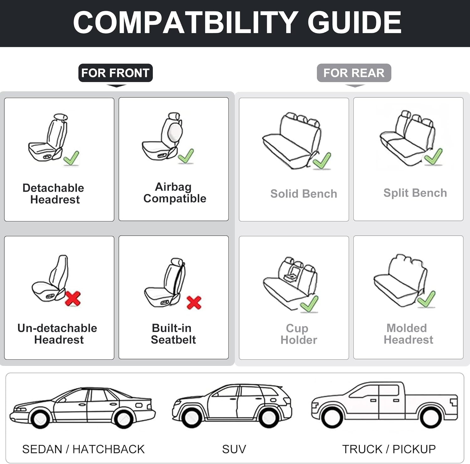- Universal Car Seat Covers: Our seat covers are designed to fit most vehicles, including sedans, trucks, vans, and SUVs. If you are not sure whether the covers are suitable for you, please inquiry BWTJF customer service team