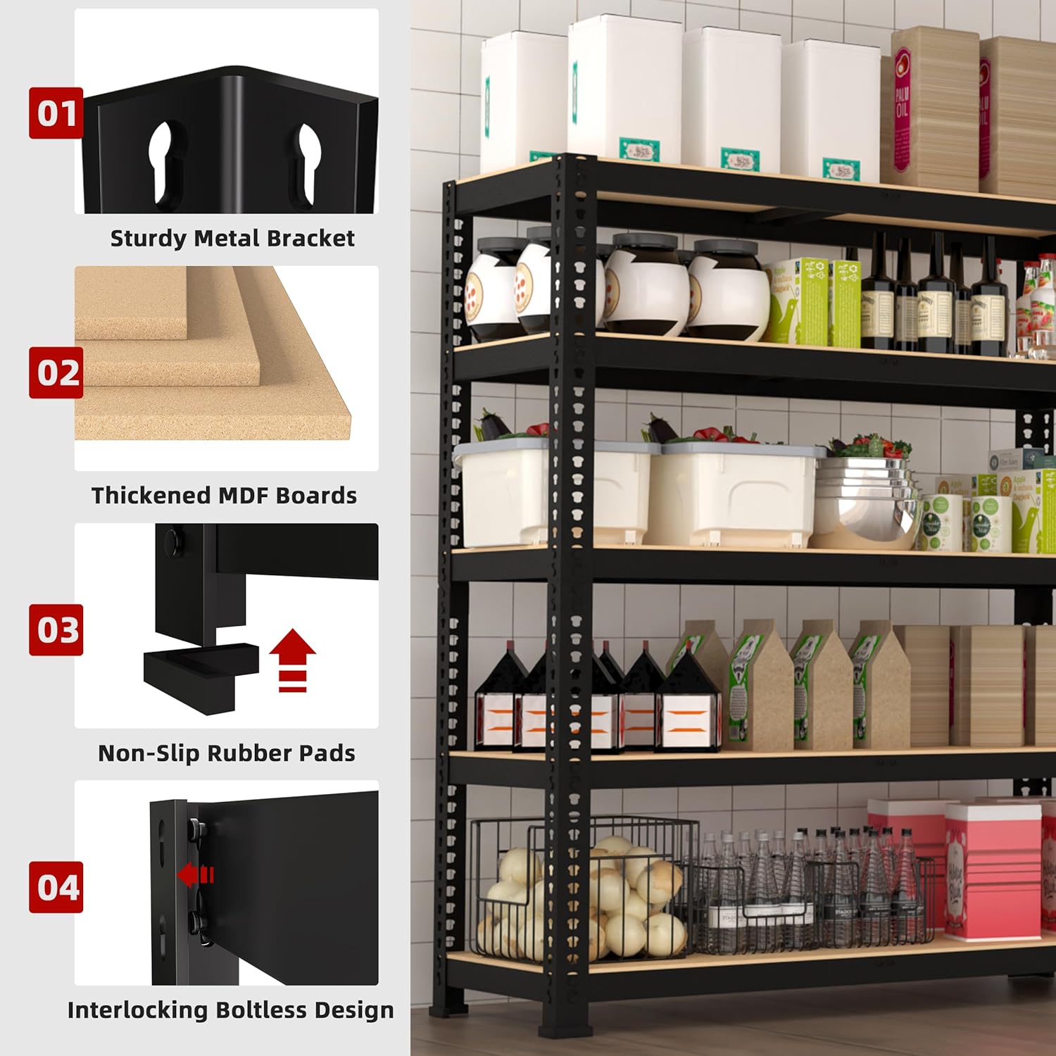 2 Packs 35.5" W x 16" D x 71" H Adjustable Garage Storage Shelves - 5-Shelf Heavy Duty Shelving Unit, Metal Utility Storage Organizer Racks for Warehouse Pantry Closet Kitchen, Black