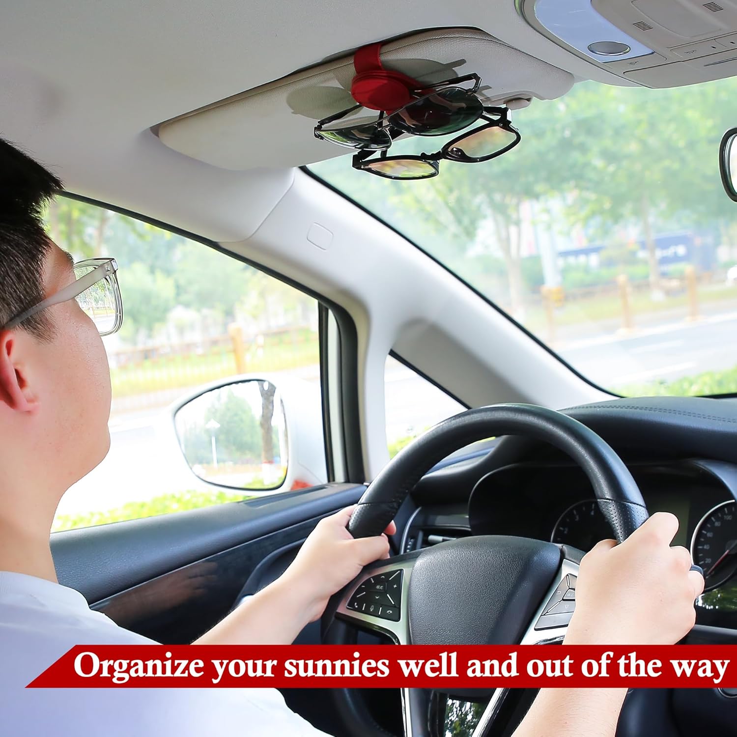 - Strong Magnetic Design Within Reach: This car sunglass holder has 4 strong magnets built-in, which can securely keep eyeglasses from falling while driving; moreover, magnetic closure allows you to get your sunnies easily with one hand whenever you need them