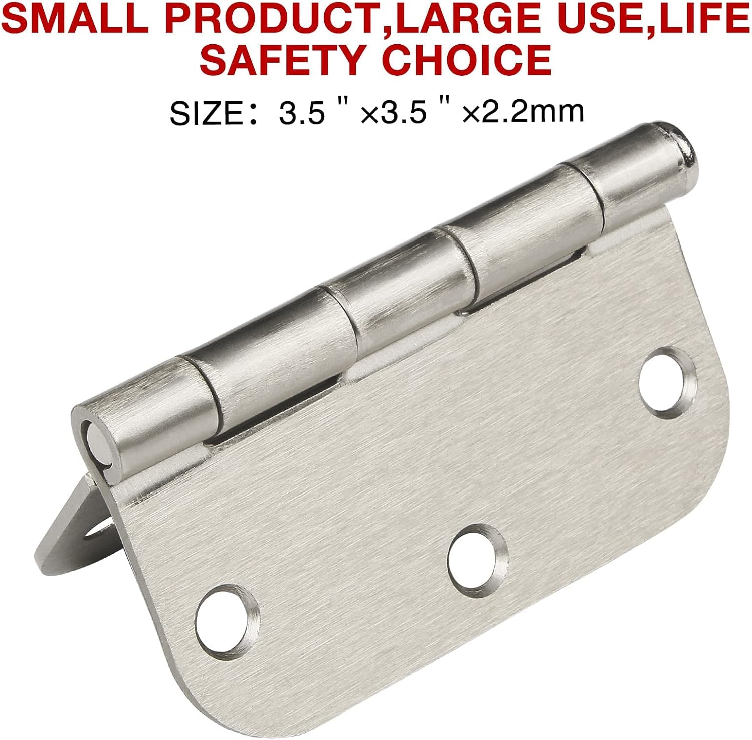 - Nickel door hinges 3.5" rounded corners with 6 holes for front door, cabinet, wooden box. Plain bearing hinges is including 216 free screws for quick and easy installation. It can be rotated 270 degrees.