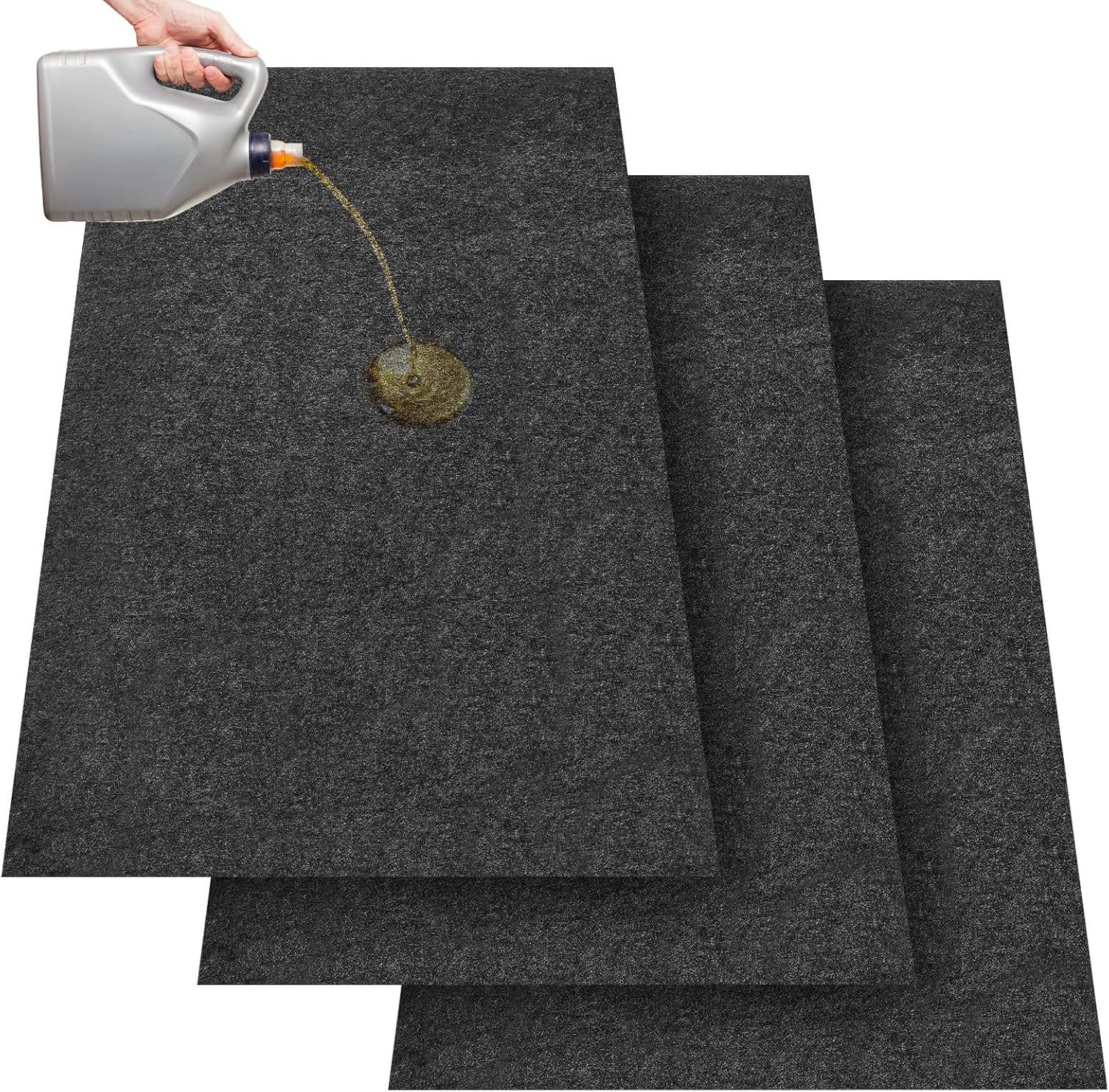 3 Pcs 36 x 60 Inch Oil Spill Mat for Driveway Garage Under Car Leaks Absorbent Oil Pad, Black Rubber Mat Garage Floor Protecting with Waterproof Backing, Reusable, Washable, Non Slip