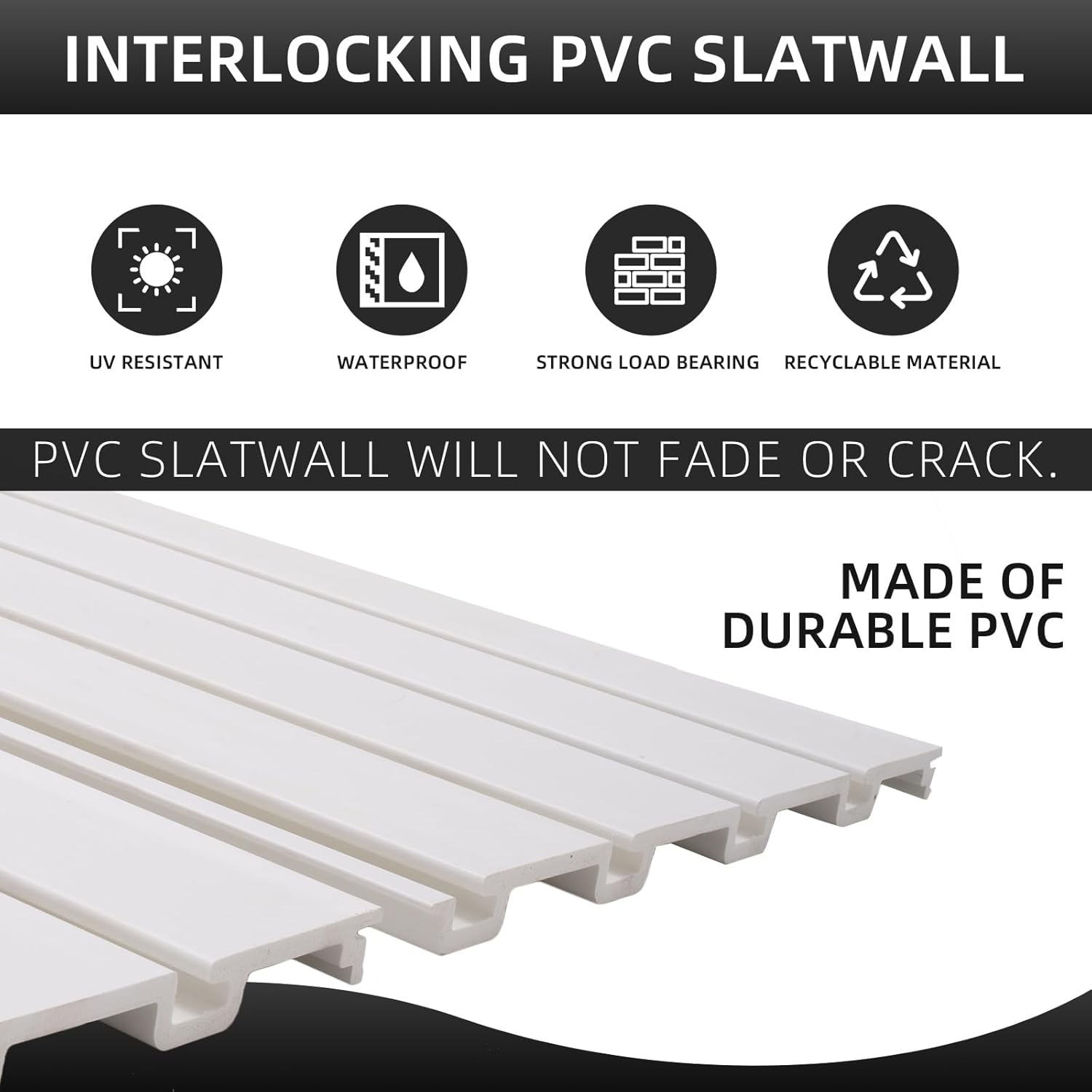 - DURABLE SLAT WALL PANEL SYSTEM: Our high-quality pvc slat wall panels are designed to withstand harsh conditions, surpassing drywall with 30 times more durability. They are fire-resistant, waterproof, and resistant to fading, drying, cracking, and peeling. With their sleek surface and minimal maintenance requirements, our garage slatwall offer unbeatable strength and reliability, making them the perfect choice for your space.