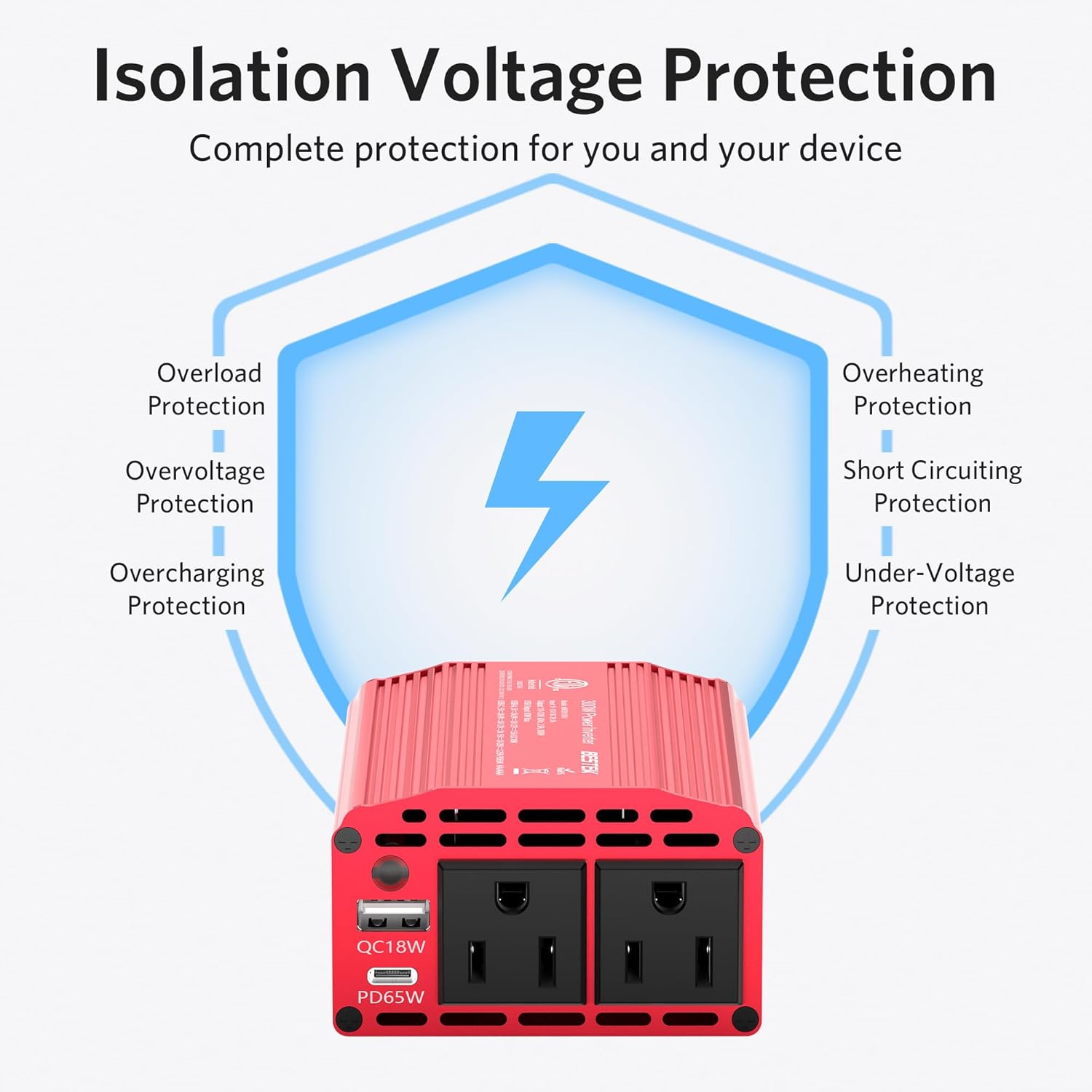 - BESTEK Advantage: America's leading brand of car power inverter. Offers 300 watts of continuous DC to AC power and 700 watts of instant power with 2 AC outlets, 1 PD 65W USB-C port and 1 USB-A QC 18W port to easily and quickly charge and power most of your devices