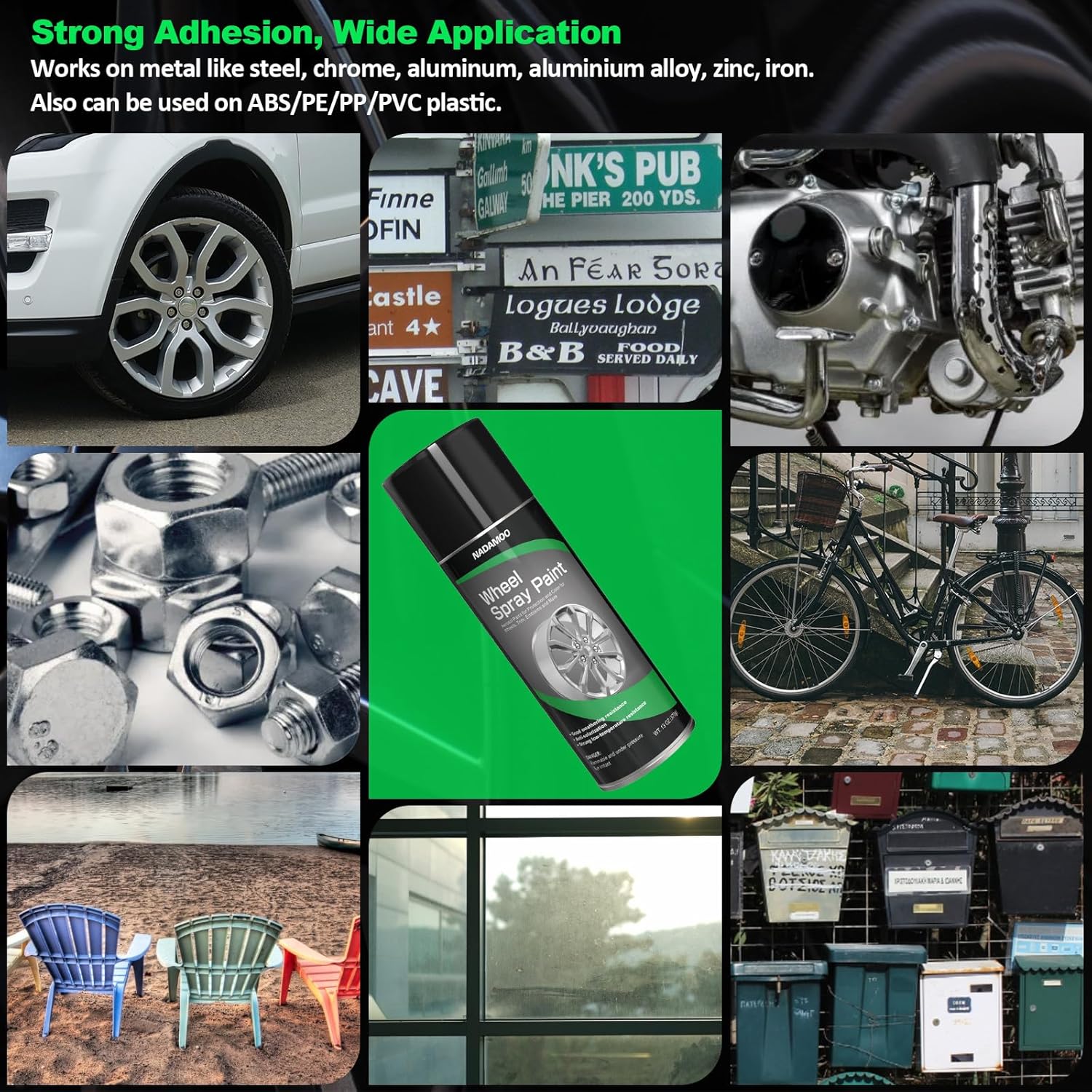 - NADAMOO Wheel Rim Spray Paint is a fast-drying modified acrylic aerosol wheel paint, desighed for recoloring and protecting wheels made of aluminum and steel or other plastic hubcaps, also suitable for restoring plastic bumper mirror and more.