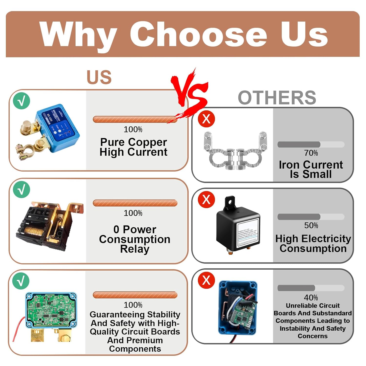 - Low Consumption: The battery kill switch consumes 0 power when it is in standby, the large silver contacts allow it to withstand 1200A large instantaneous current for 0.1-0.3 second. For reference, the car start current is 200A-300A.