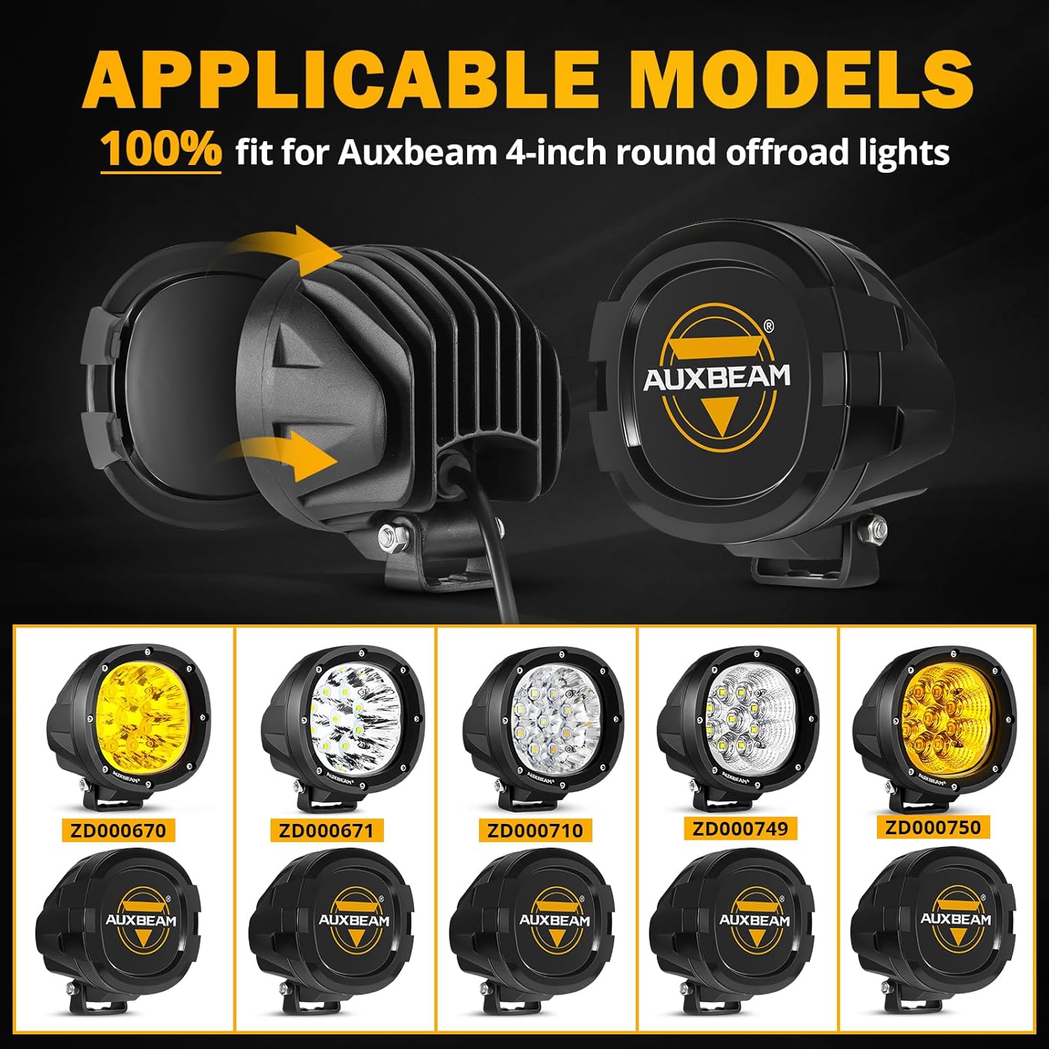 Auxbeam 4 inch LED Pod Covers, 2PCS Black Round Offroad Driving Work Lights PC Protective Covers, Light Bar Lens Covers Waterproof Dustproof for Truck SUV ATV UTV Jeep Wrangler Motorcycle