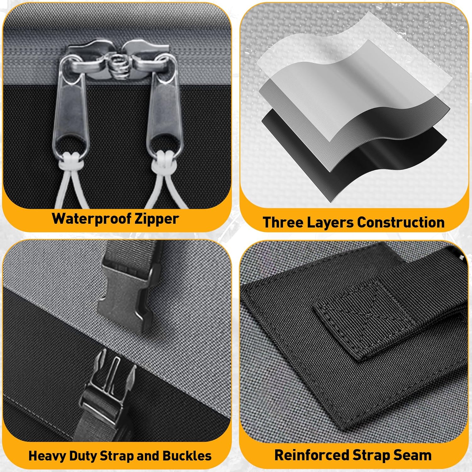 - [21 ft³ CARGO BAG]: Ultra rugged fully waterproof 600D rooftop cargo carrier bag with water repellent double coating surface and liner. Always keeping your belongings dry in all weather conditions. 59.1"(L) x 39.3"(W) x 15.7"(H) extraordinary capacity helps to maximize cargo storage and provides extra 157 gallon cargo storage space for your vehicle.