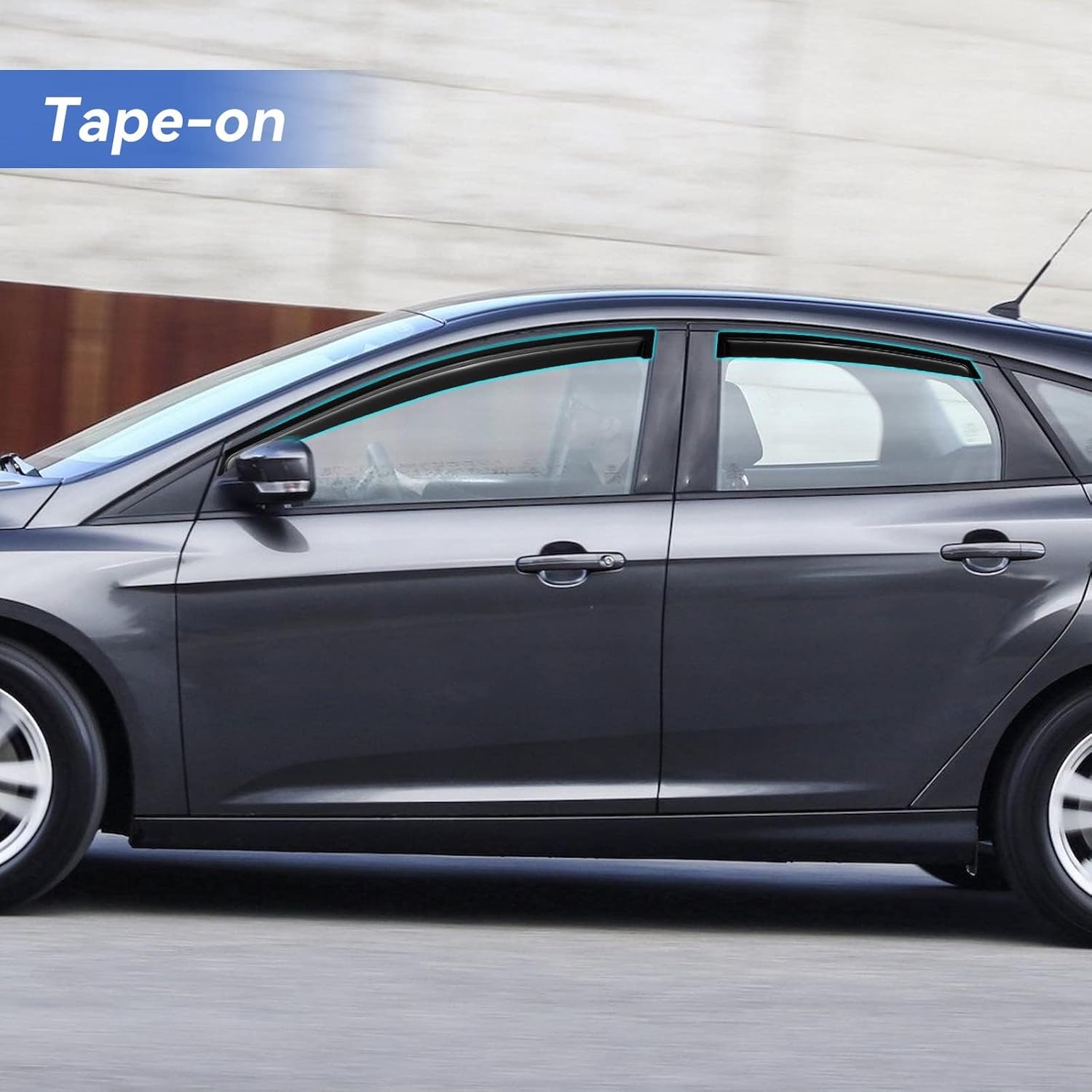 - 【Perfect Fit】YQAUTEC Out-Channel/Outside Adhensive Window Visors Rain Guards Shield fit for 2012 2013 2014 2015 2016 2017 2018 12 13 14 15 16 17 18 Ford Focus Sedan, Side Window Vent Wind Deflectors Visors Shades. (Not for Focus RS & ST)