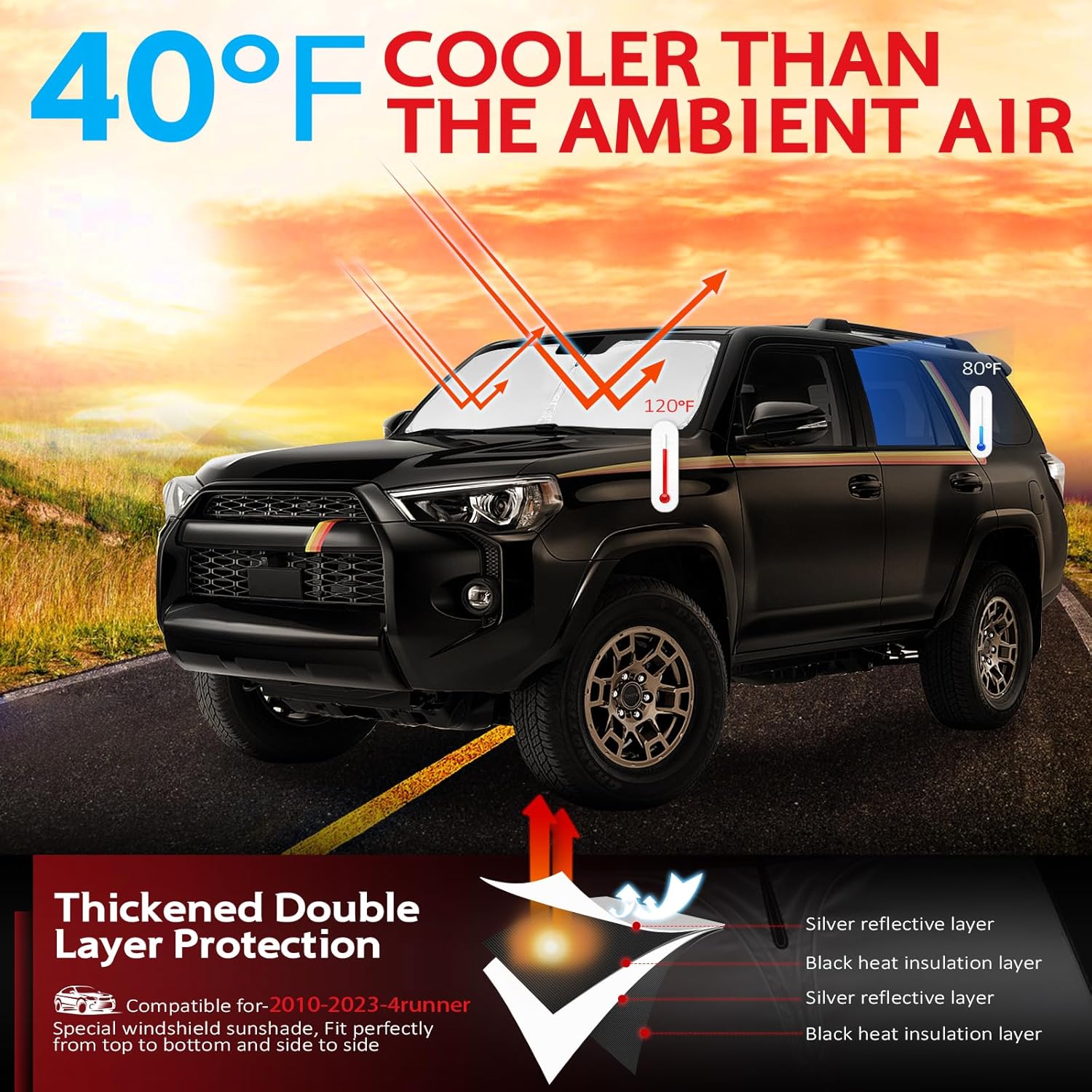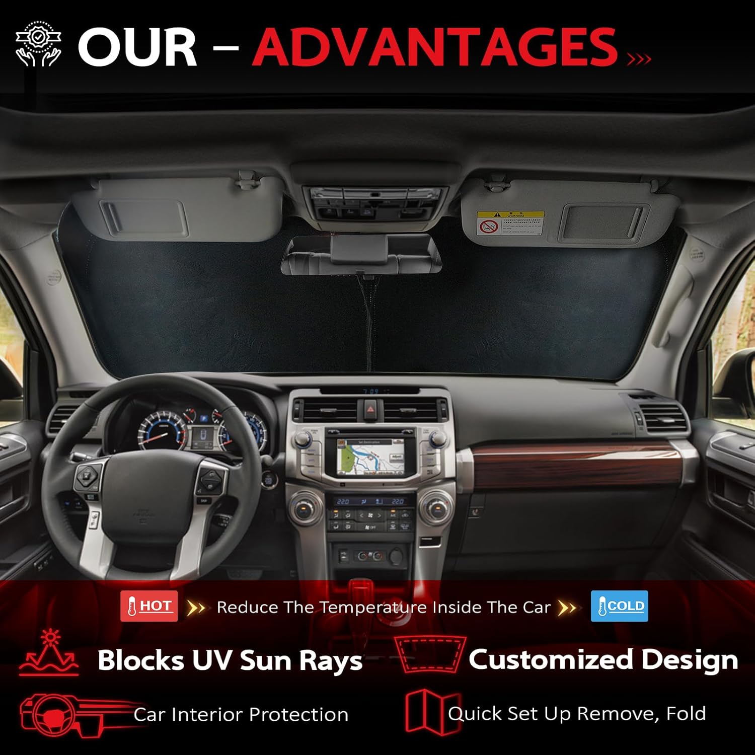 KAYZT Windshield Sun Shade for Toyota 4Runner 2010-2024 4-Runner Foldable Sunshade SUV Front Window Custom Fit Accessories