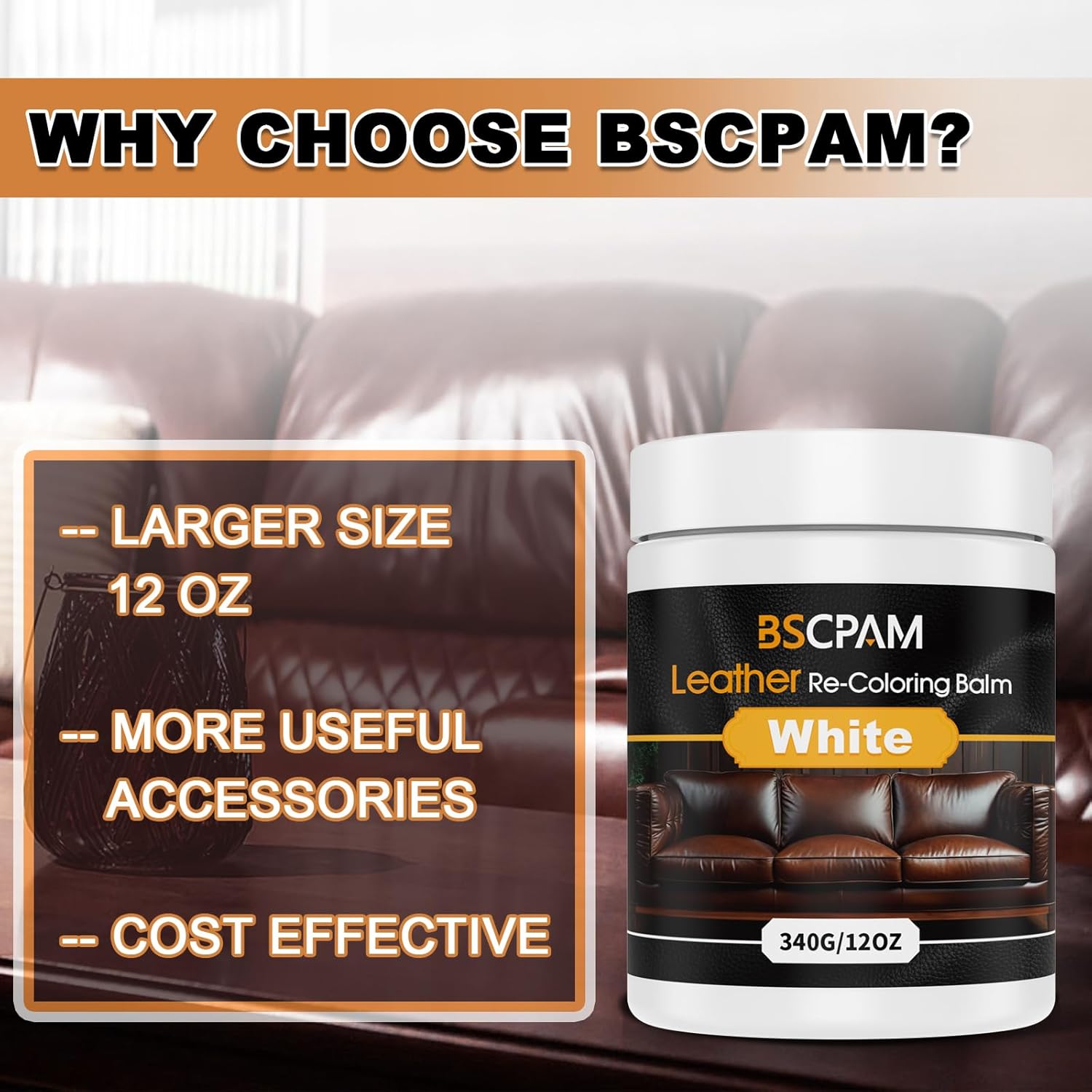 - New Leather Repair Solution: Our water-based White leather Recoloring balm uses a cutting-edge formula that penetrates leather fibers quickly, restoring its original luster. This balm not only recolors your leather furniture but also repairs scuffed or faded areas, reviving the leather’s original color and texture.