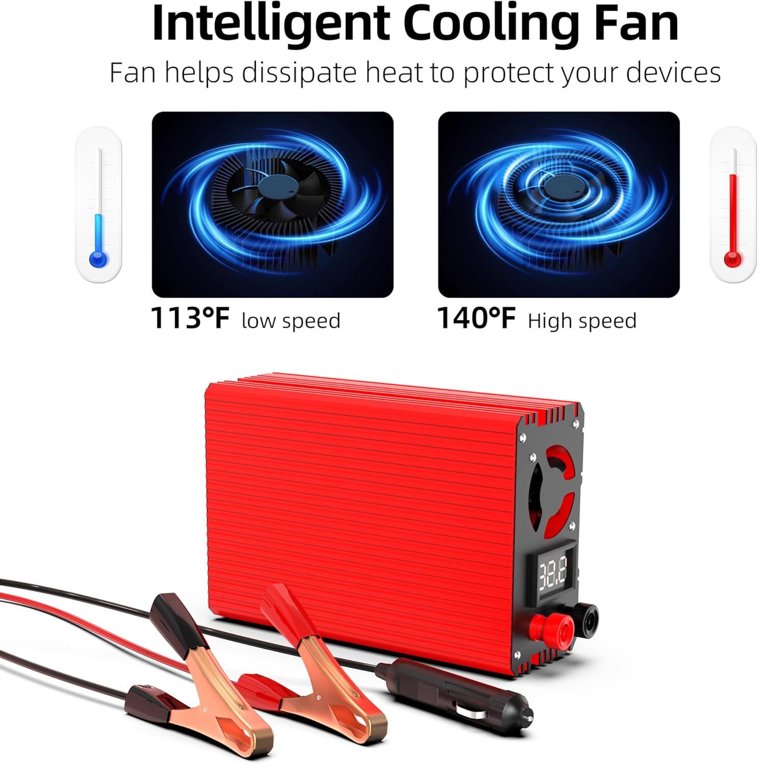 - 【Quiet cooling fan】The smart cooling fan will automatically rotate at different speed according to power load and temperature, this design can help to reduce the fan noise.Also the high speed cooling fan protect the inverter against overheating