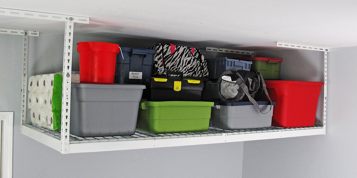 - MORE STORAGE, LESS CLUTTER: Designed with your storage needs in mind, our ceiling mounted overhead garage racks help you get organized by storing your things off the floor and out of the way saving valuable space in your garage. This hanging storage system is a great space saver; allowing you to utilize previously unused space providing you more storage and better organization.