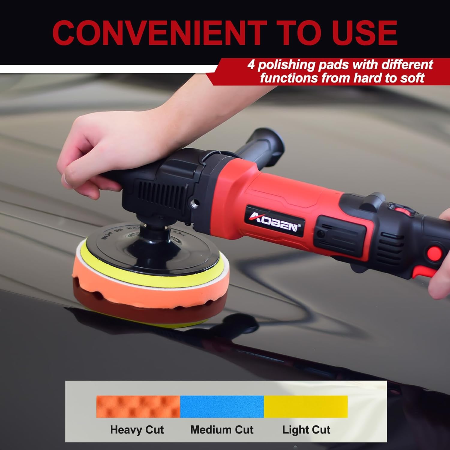AOBEN 6/7 inch Buffer Polisher,Rotary Car Buffer,1600W Car Polisher Waxer Kit with 6 Variable Speed 1000-3500RPM & 4 Polishing Pads,Detachable Handle for Car Polishing and Waxing