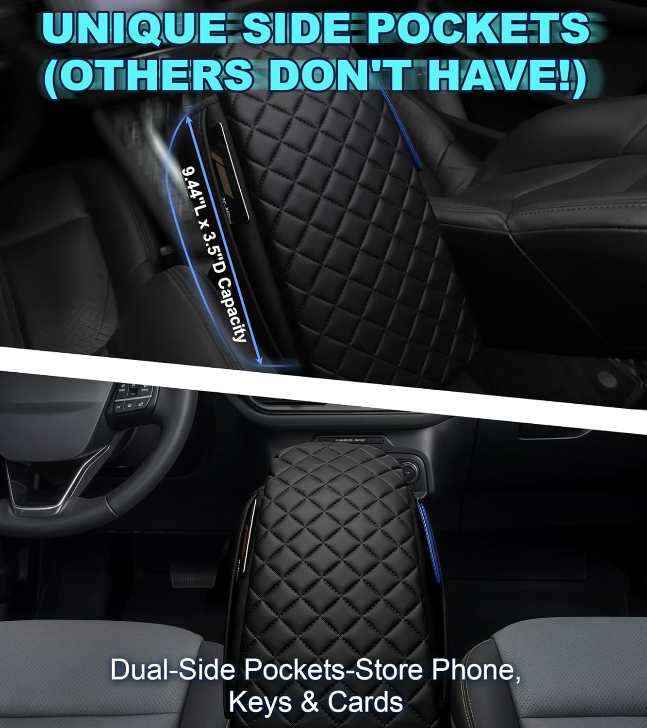 Armrest Cover for Ford Bronco Sport 2021-2025 Center Console Pad with Organizer Storage Pockets, Black Faux Leather Arm Rest Lid Protector Cushion Interior Accessories 2/4 Door(for Bronco Sport)