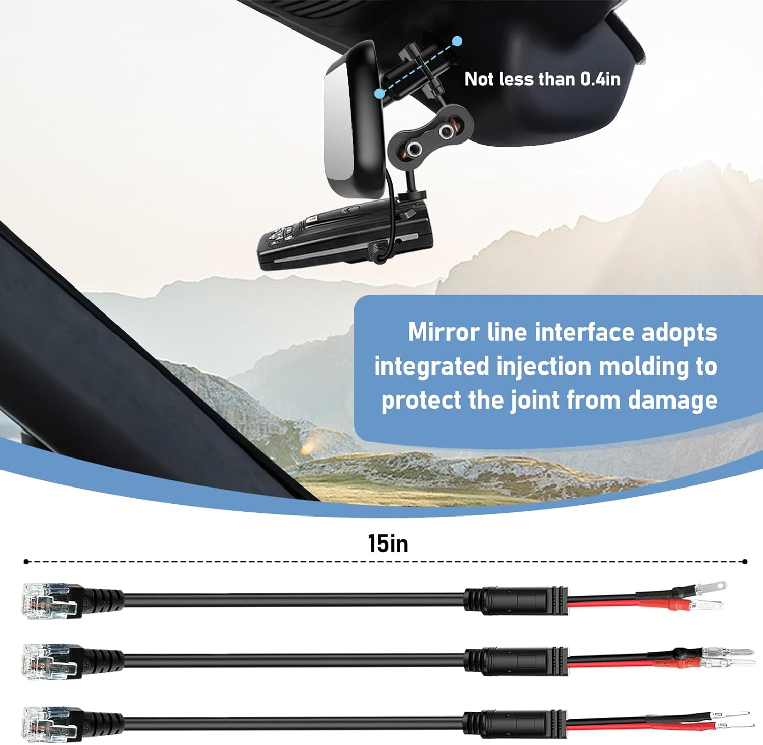 - Packaging list: 1 Radar detector mirror mounted aluminum bracket × 1 (disassembling accessories),2 rearview mirror plug cable × 3 (Strap × 3),3 Instructions