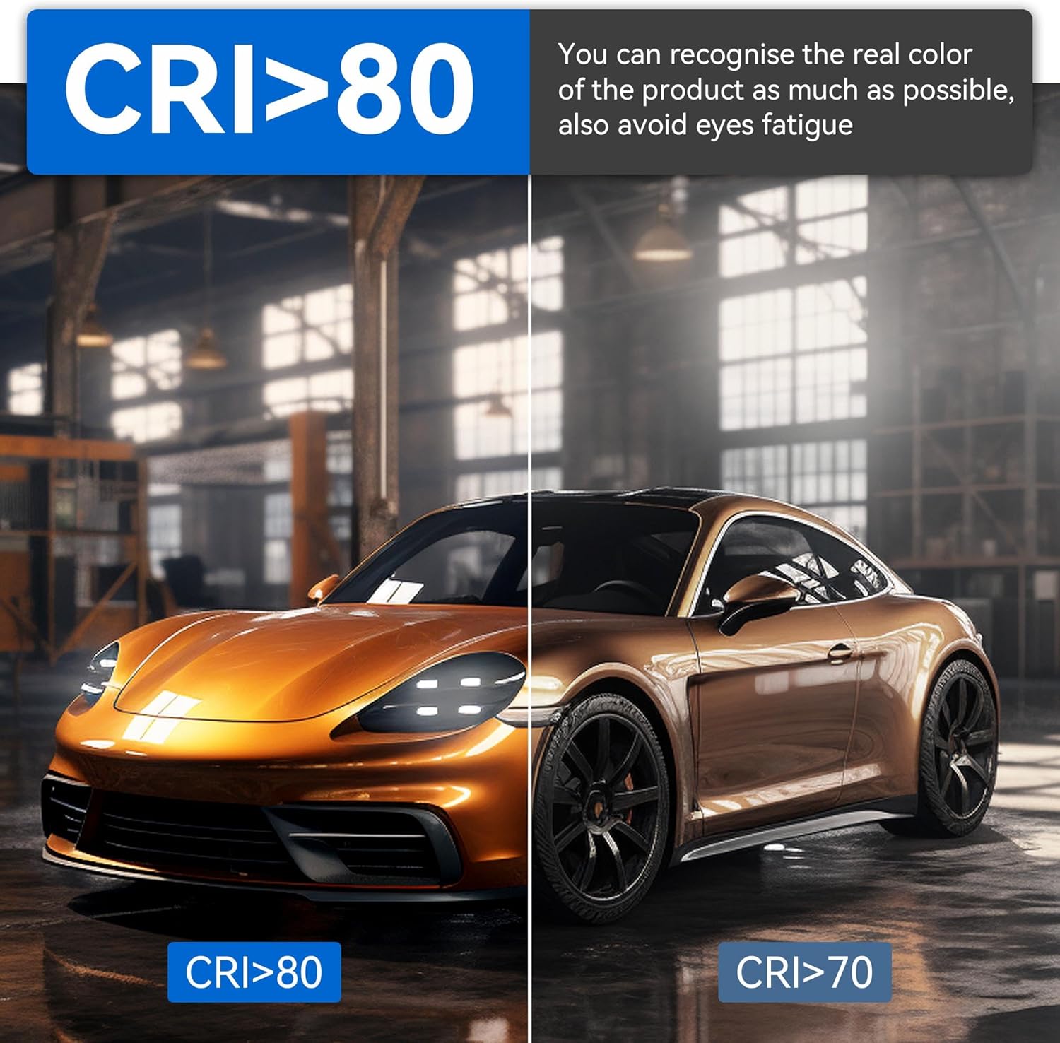 - Eyes Friendly: 5000k color temprature is closed to natural light, makes you feel as in the day, and CRI>80, you can see the real item color as much as possible, it is glare and flicker free, not spots, you will feel relax under this light