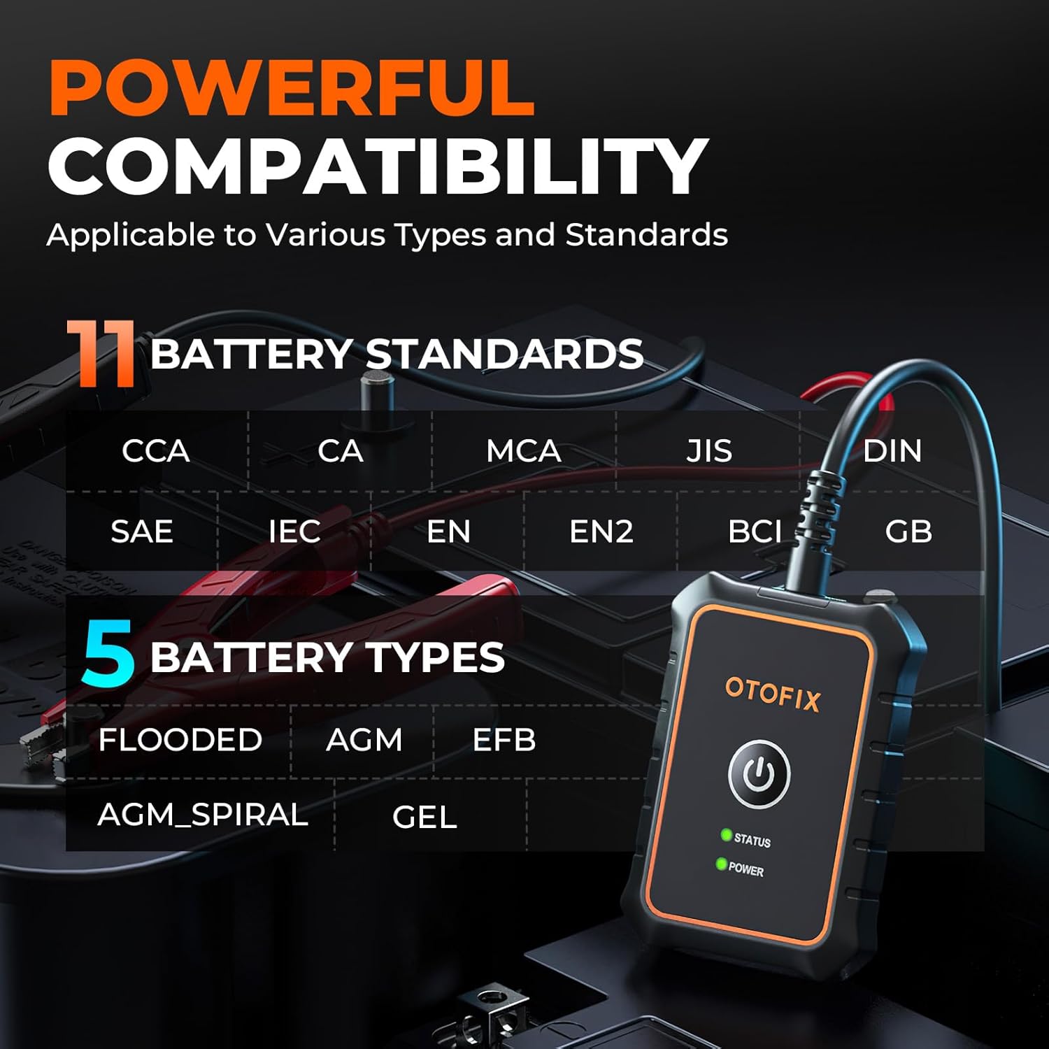 - 🎄🎁【A Must-Have Car Battery Tool】 OTOFIX BT1 Lite battery tester is a professional analysis tool for testing 6- and 12-volt batteries from 100-2000 CCA, it covers Flooded, AGM, AGM Spiral, EFB and GEL Cell batteries. Its adaptive Conductance technology give you the most accurate test result just in seconds.