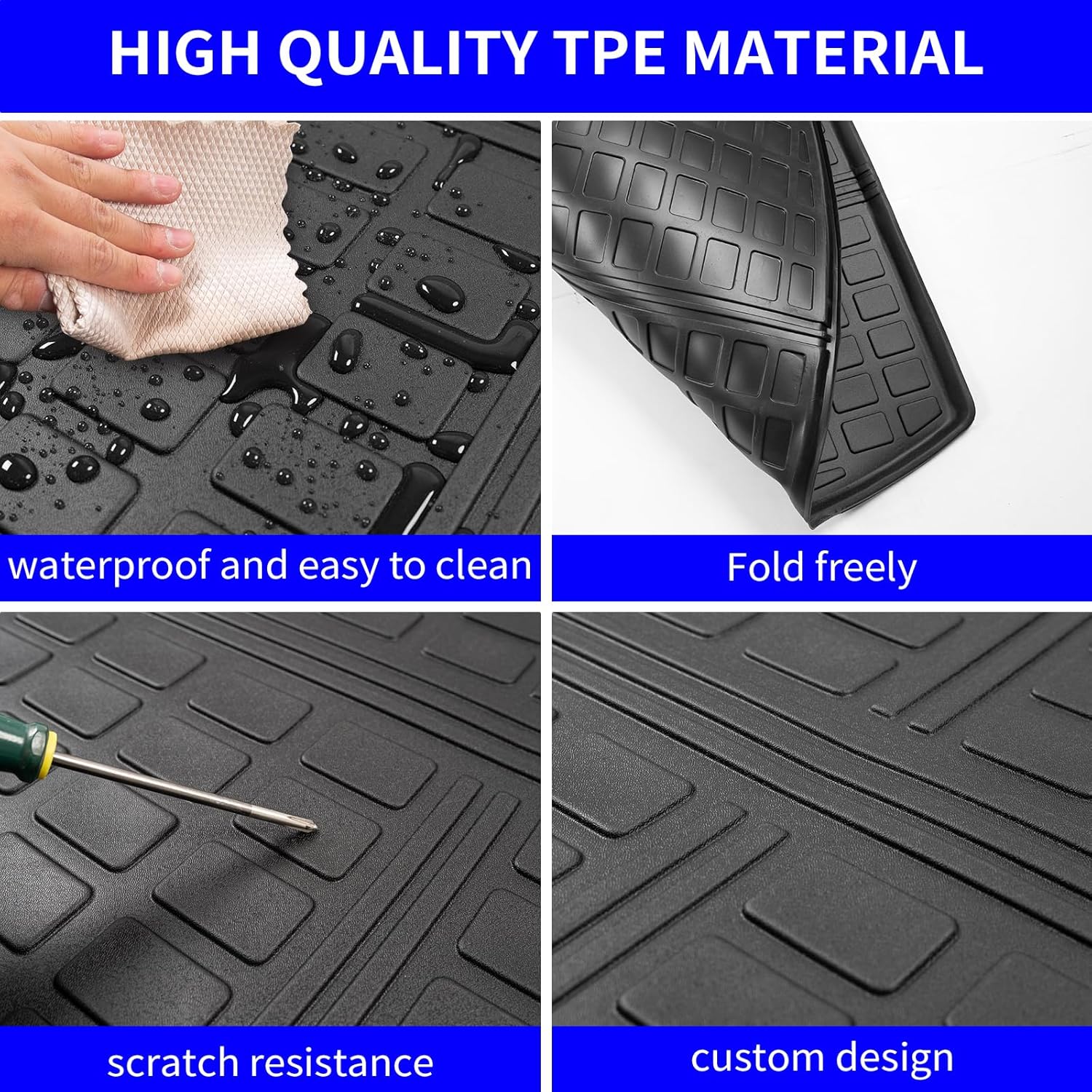 - Material:Cargo Liner is made of high-quality TPE material,odorless,flexible .High strength TPE materials not only feel good, but also maintain flexibility in extreme cold weather.Let you and your family stay healthy inside the car.