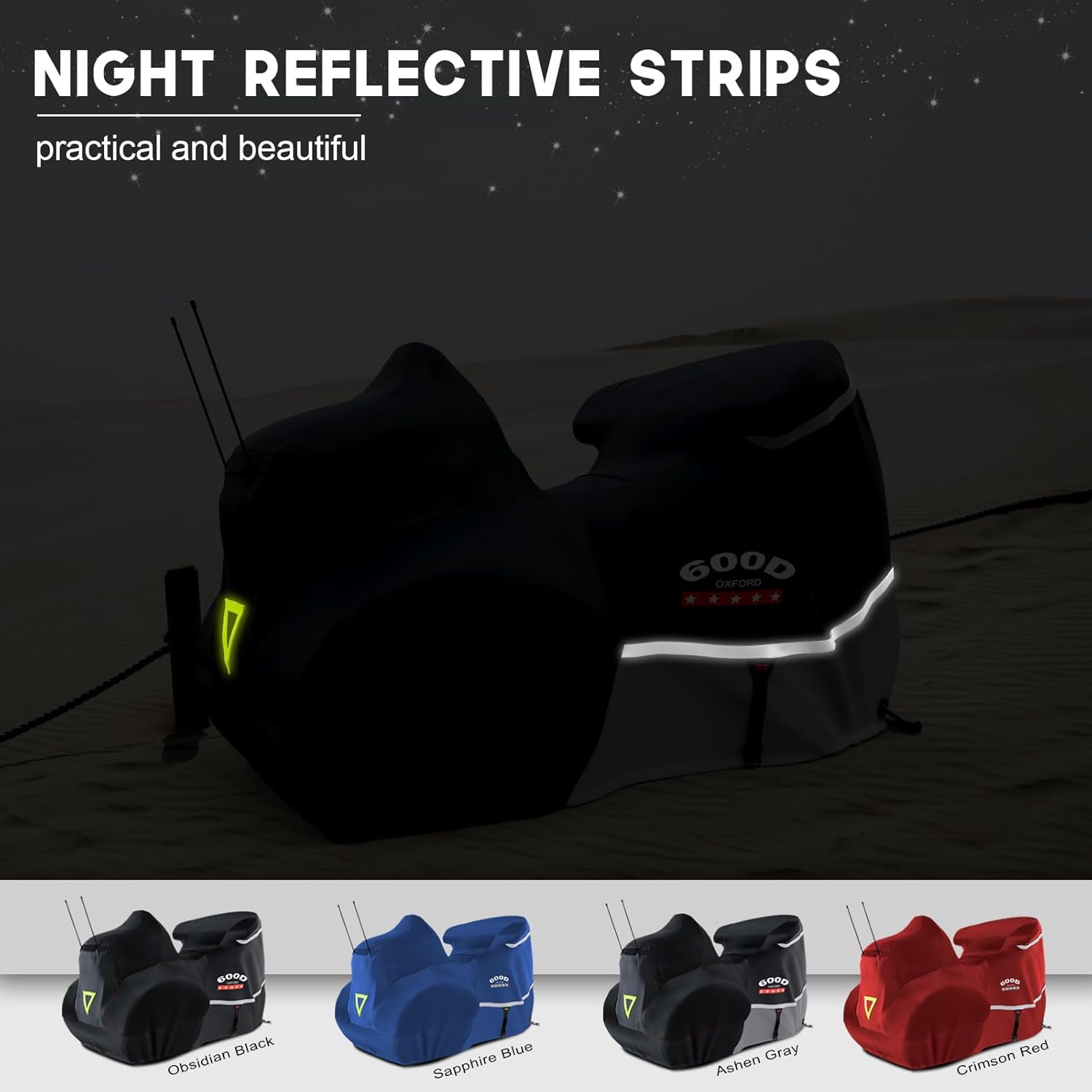 - 【3D CUT】This cover is designed for motorcycle models with side+top box.SIZE: 110"L * 43.3"W * 53"H,Suitable for most motorcycle of touring models,such as Harley Davidson ,HONDA,INDIAN,DUCATI,BMW,SUZUKI,Triumph Tiger,KTM,YAMAHA,KAWASAKI.