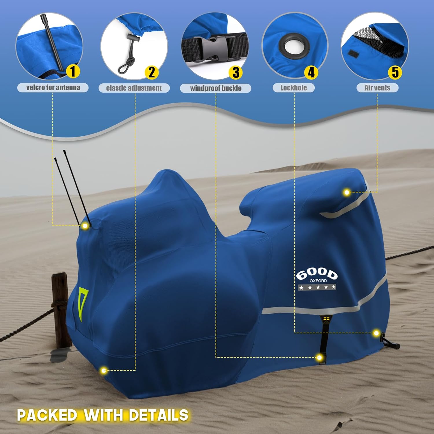 - 【100% 600D Oxford cloth】: The motorcycle cover, weighing 6.8lb, is almost thicker and solider than those on the market. The fabric is resistant to aging and ripping, and UV proof, dustproof and rainproof.