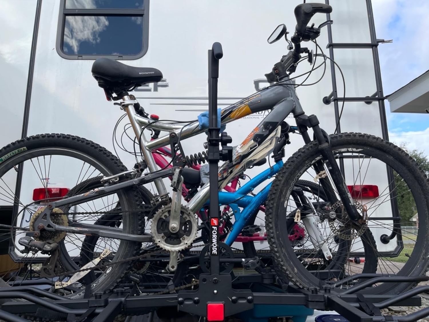 - DURABLE & CAPACITY - Hitch mount bike rack is constructed with corrosion-resistant and all steel construction, making it durable and it holds up to 80 pounds per bike, which is handy for mountain or electric bikes