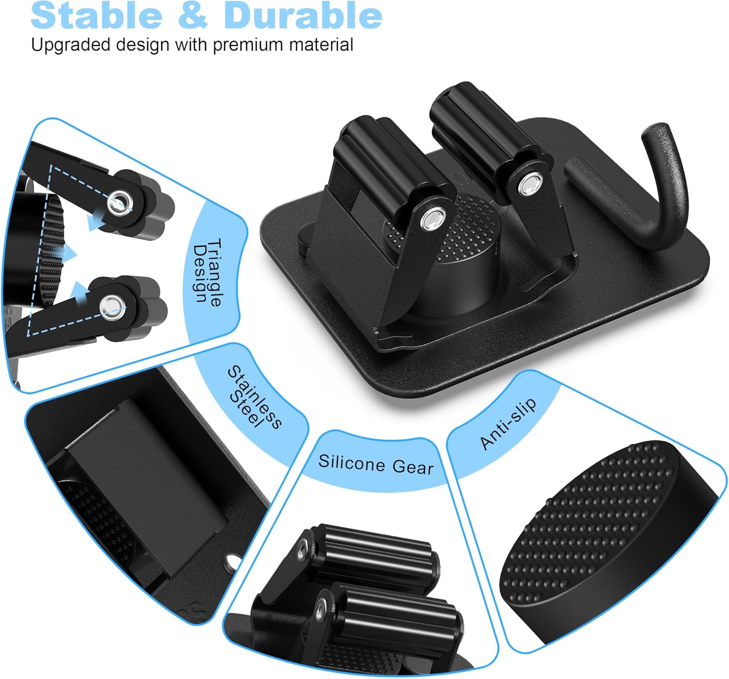 - 【Outstanding Stable】The upgraded mop holder wall mount are design with Triangle structure and made with soft silicone petal-shaped rollers, which can provide strong grip and friction, no need to worry about falling off after being stained with water.
