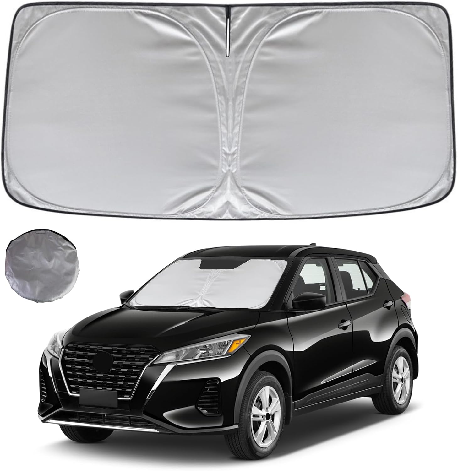 - KAYZT windshield sun shade is precise custom fit for 2018 2019 2020 2021 2022 2023 2024 Nissan Kicks, Thoroughly covers every corner of the windshield, Tailored to accommodate rear view mirror, Ensuring a seamless and snug fit without obstruction, Must have car accessories for Kicks