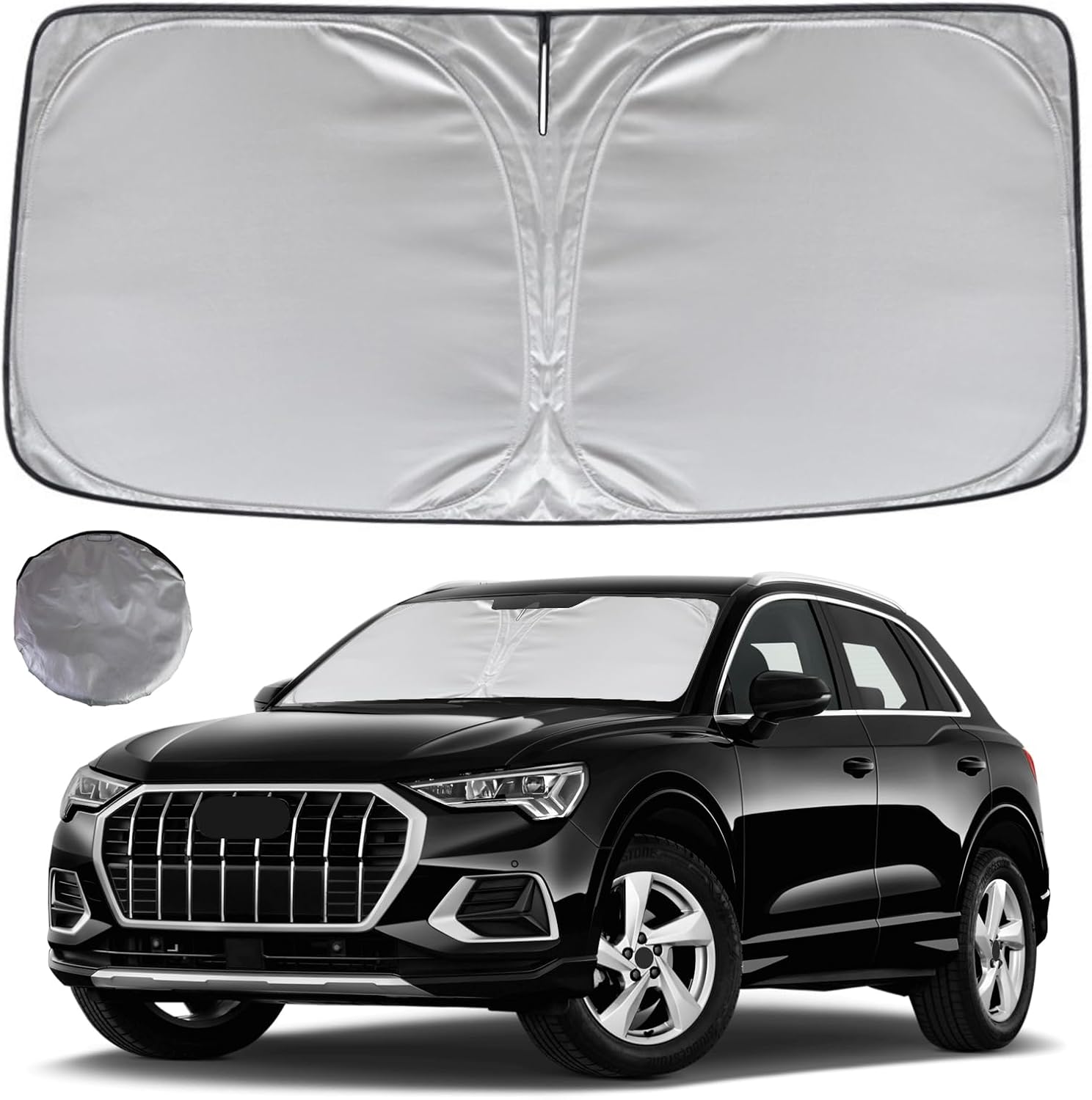 - KAYZT windshield sun shade is precise custom fit for 2019 2020 2021 2022 2023 2024 2025 2026 Audi Q3, Thoroughly covers every corner of the windshield, Tailored to accommodate rear view mirror, Ensuring a seamless and snug fit without obstruction, Must have car accessories for Q3