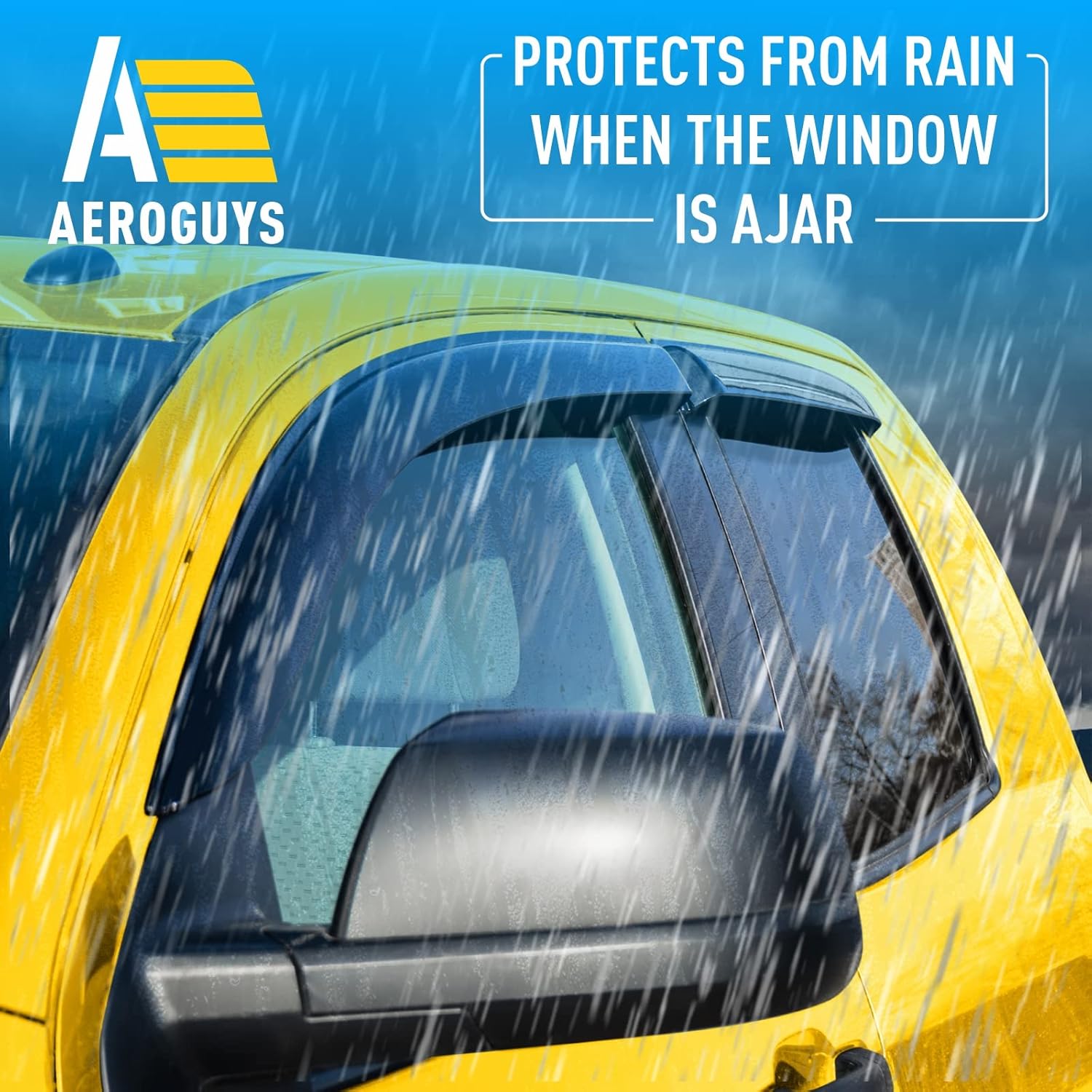 - Incredibly Durable AEROGUYS Auto Window Deflectors – They are made with strong and tough polycarbonate which is clear and scratch-resistant. They also provide UV protection making your ride more comfortable under all weather conditions.