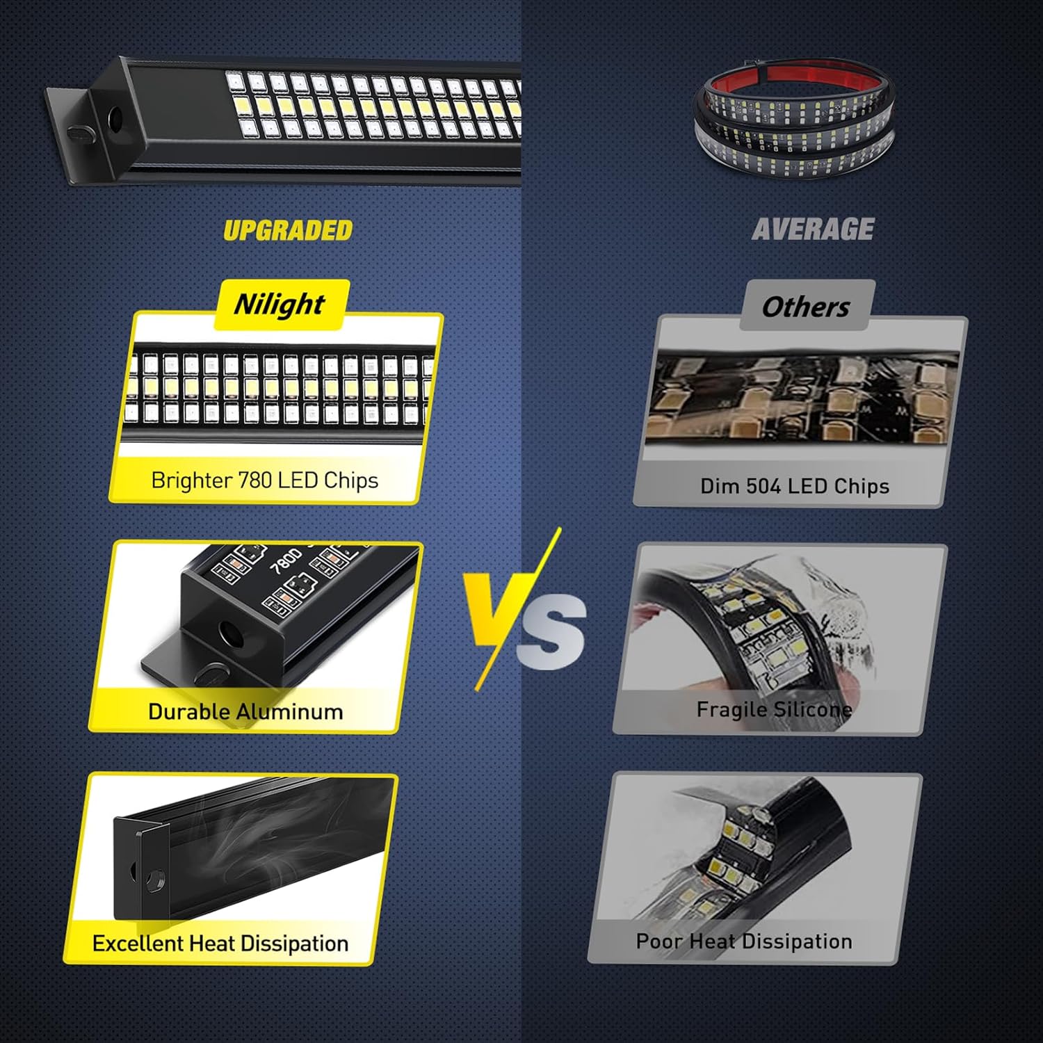 Nilight Truck Tailgate Light Strip 48" Aluminum Frame Triple Row 780 LED Bar with Red Running Brake Sequential Turn Signals Strobe Lighting White Reverse