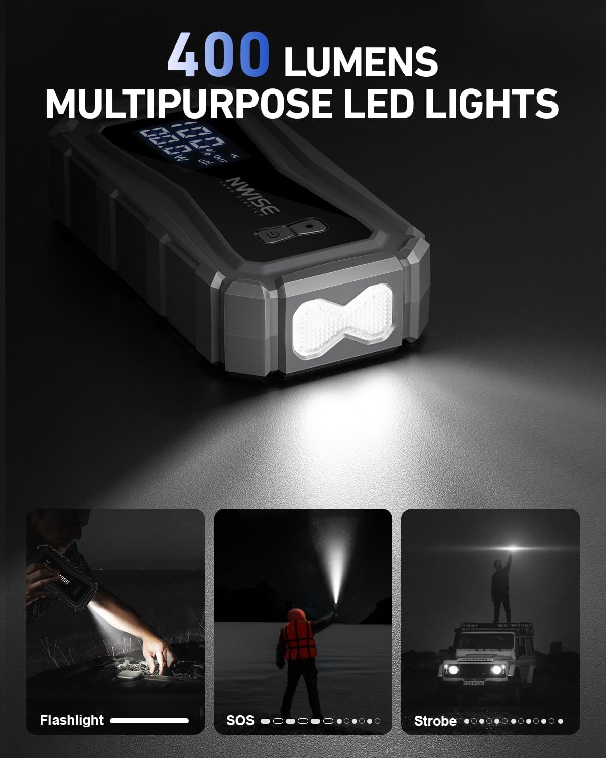 - 【Intelligent Protection Systems】NWISE SJ-70 Jump Starter for vehicles works with smart jumper clamp which provides 10 safety protections to ensure it's safe to use.Bearing extremely environment from -4°F to 140°F to ensure you can jump start under different conditions.
