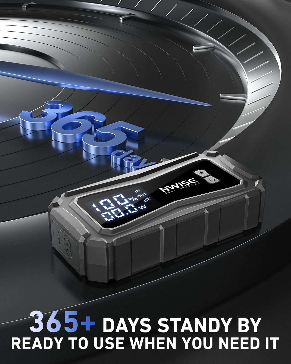 NWISE Car Jump Starter, 6000A Peak 25800mAh Portable Battery Starter (Up to 10L Gas or 8L Diesel Engine) with Smart Safety Jumper Clamps,12V Jump Boxes Large Screen with 45W Fast Charging