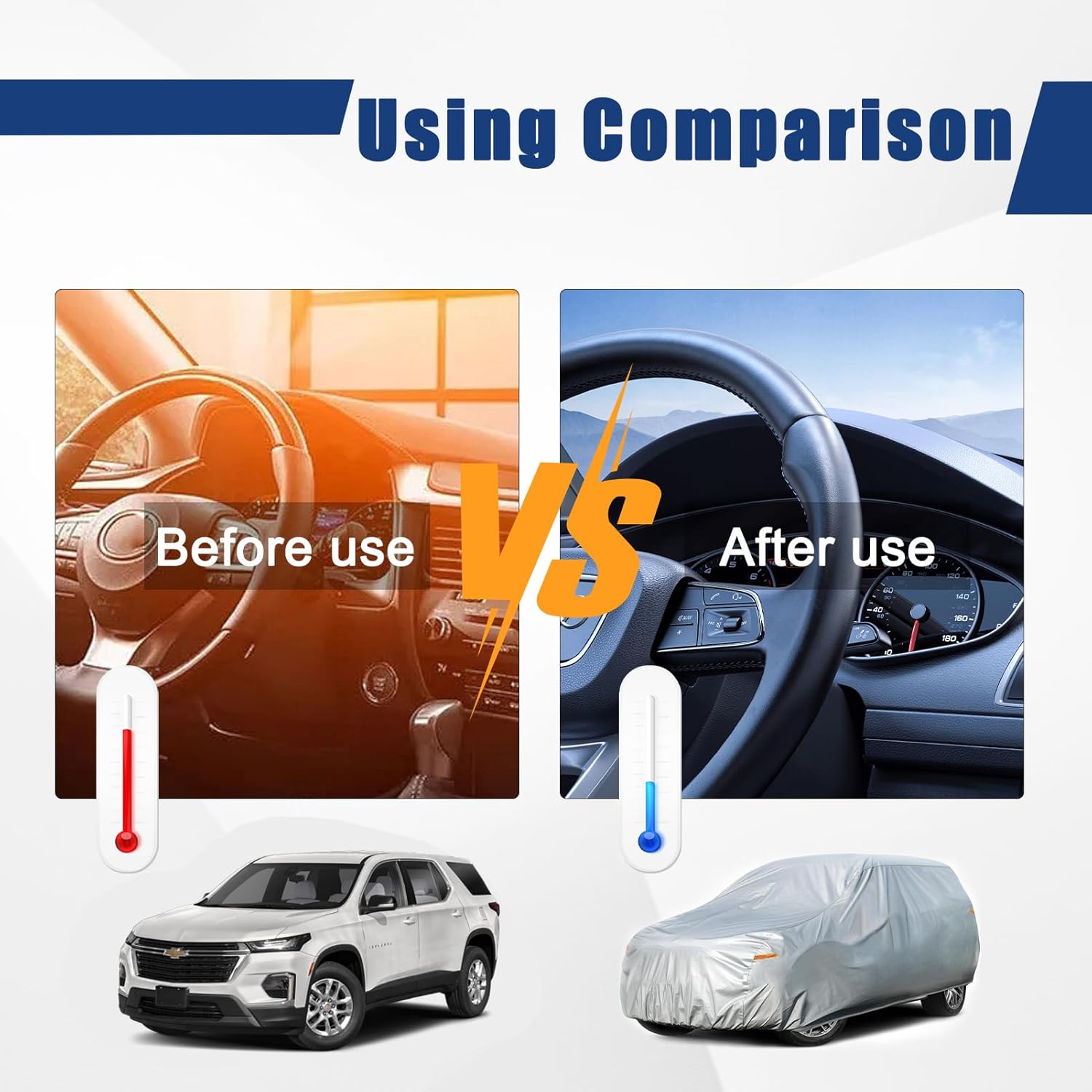 Kayme 6 Layers SUV Car Cover Custom Fit for Chevrolet Chevy Traverse (2009-2025) Waterproof All Weather for Automobiles, Outdoor Full Cover Rain Sun UV Protection.Silver