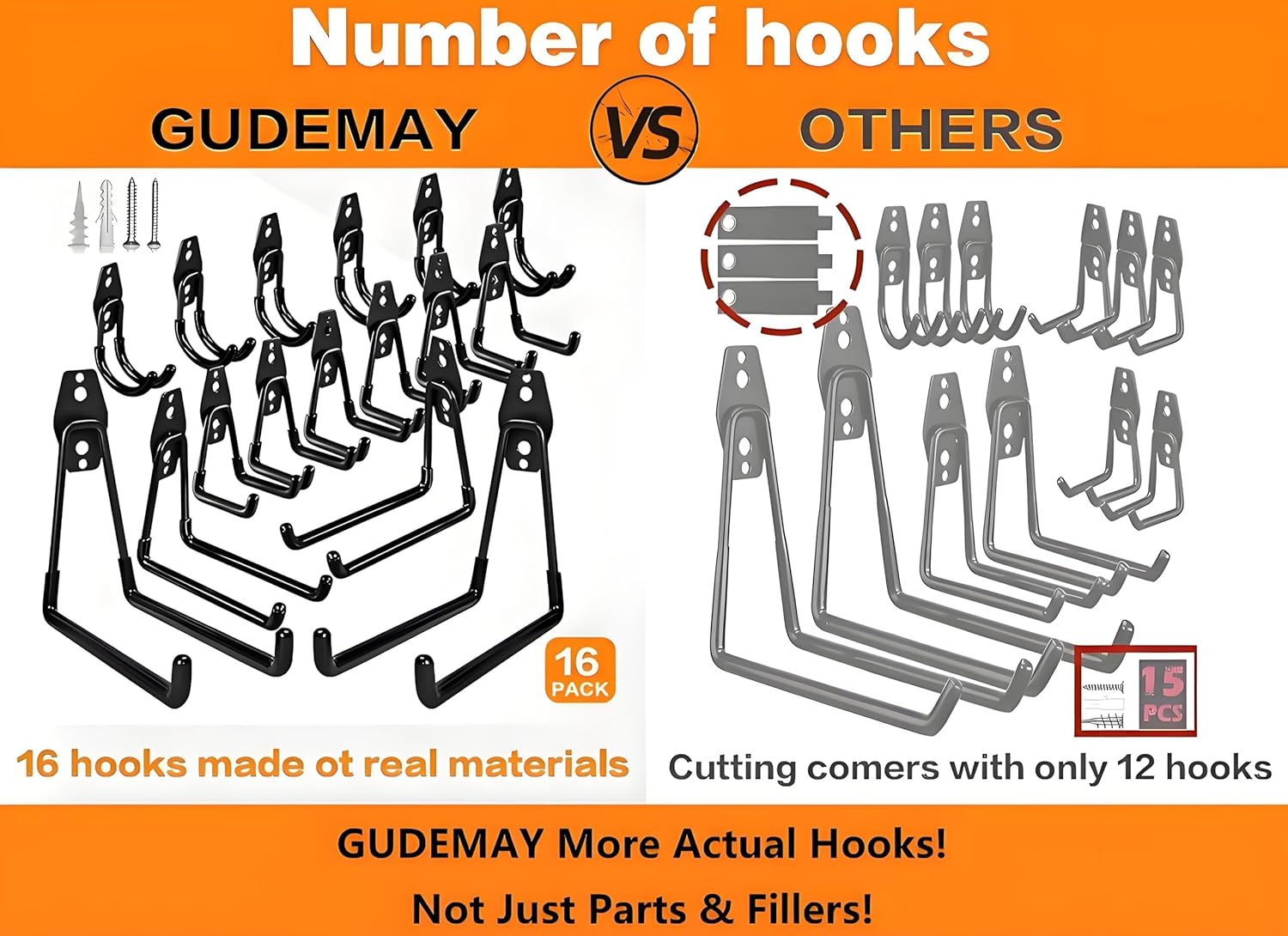 - 【GREAT GIFTS 】An awesome gift for Fathers’ Day,Christmas or housewarming for someone! All GUDEMAY utility hooks. If any garage hangers are found to be defective or any other problems arise during use, please let us know