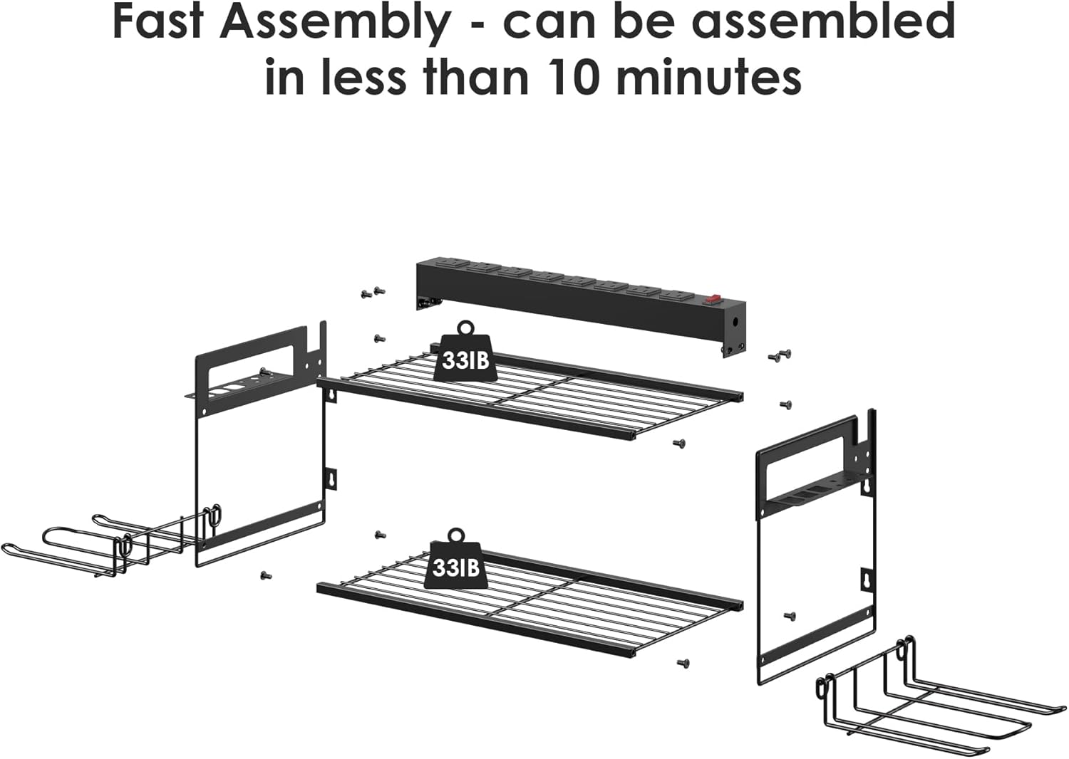 CCCEI Garage Tools Storage with Charging Station. Power Tool Battery Organizer Utility Shelf with Power Strip. 4 Drills Holder Wall Mount Rack, Black.