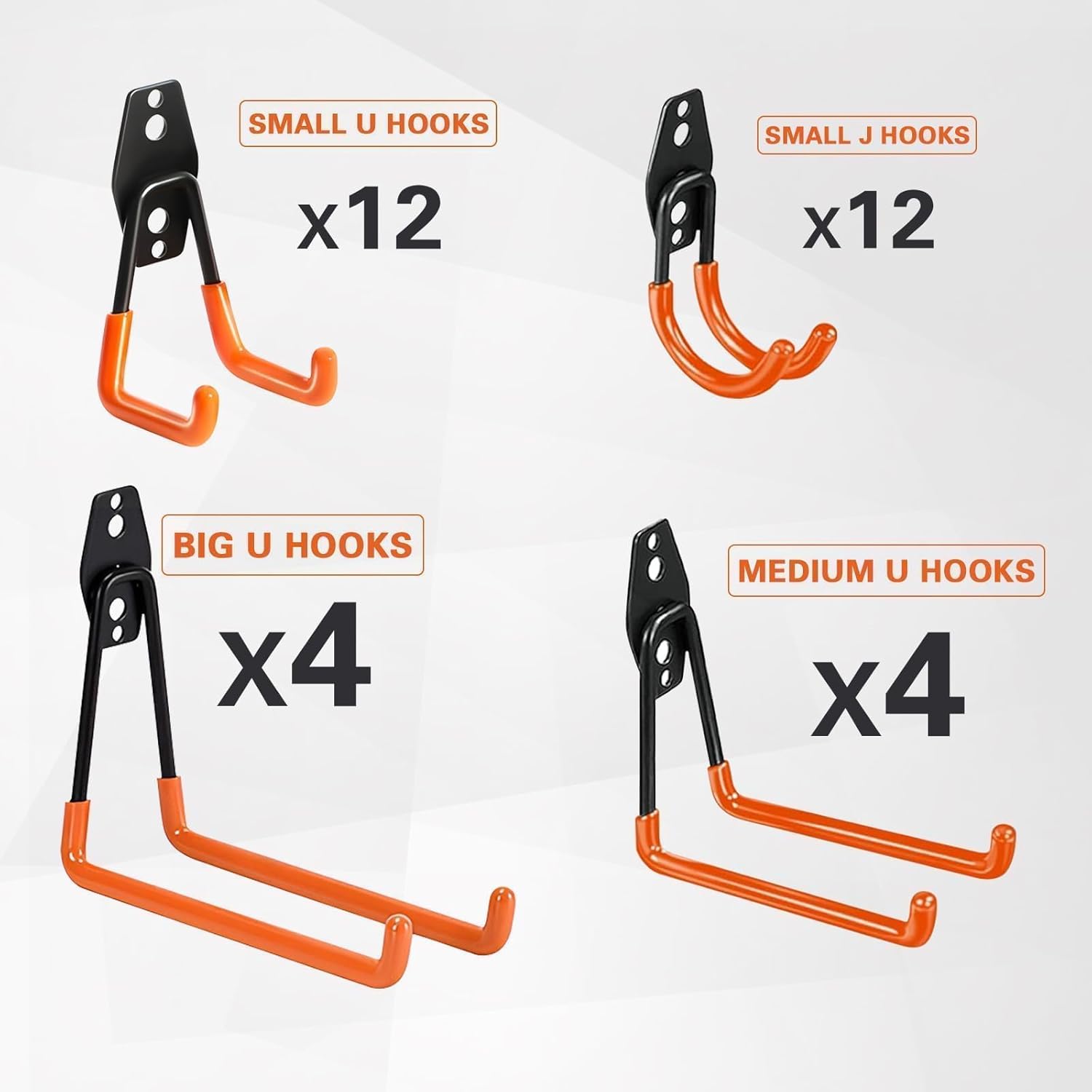 32 Pack Garage Hooks garage organization Steel Heavy Duty Garage Storage Hooks Utility Steel Wall Mount Garage Hanger &Organizer for Bikes,Garden Tools, Ladders, Bulk Items Ropes and More Equipment