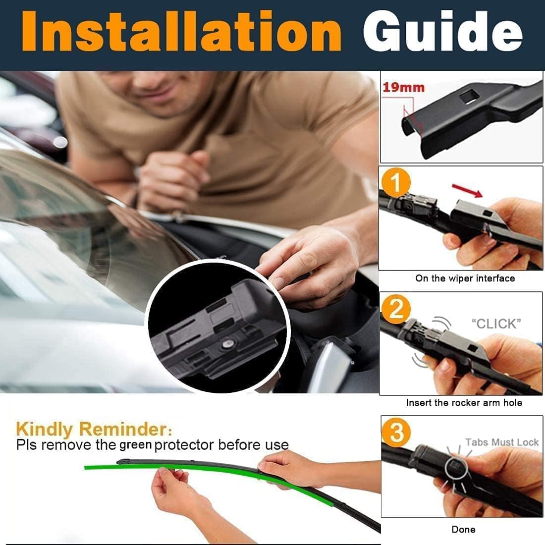 - 【EASY-TO-INSTALL】 Quick and easy to install. fit perfect to your car, like the original parts. It’s installed to the wiper arm by top lock.