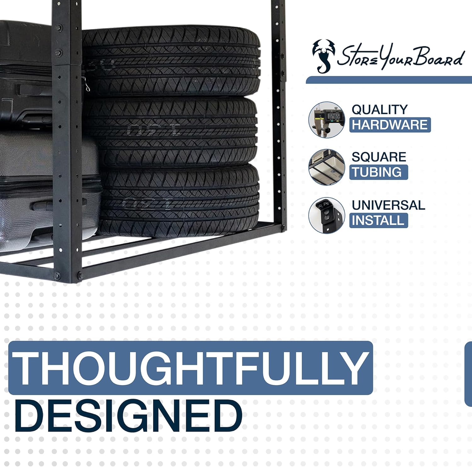 - Virginia-Based Company: Proudly engineered and tested by the StoreYourBoard design team in Troy, Virginia. Built to organize your garage and built to last!