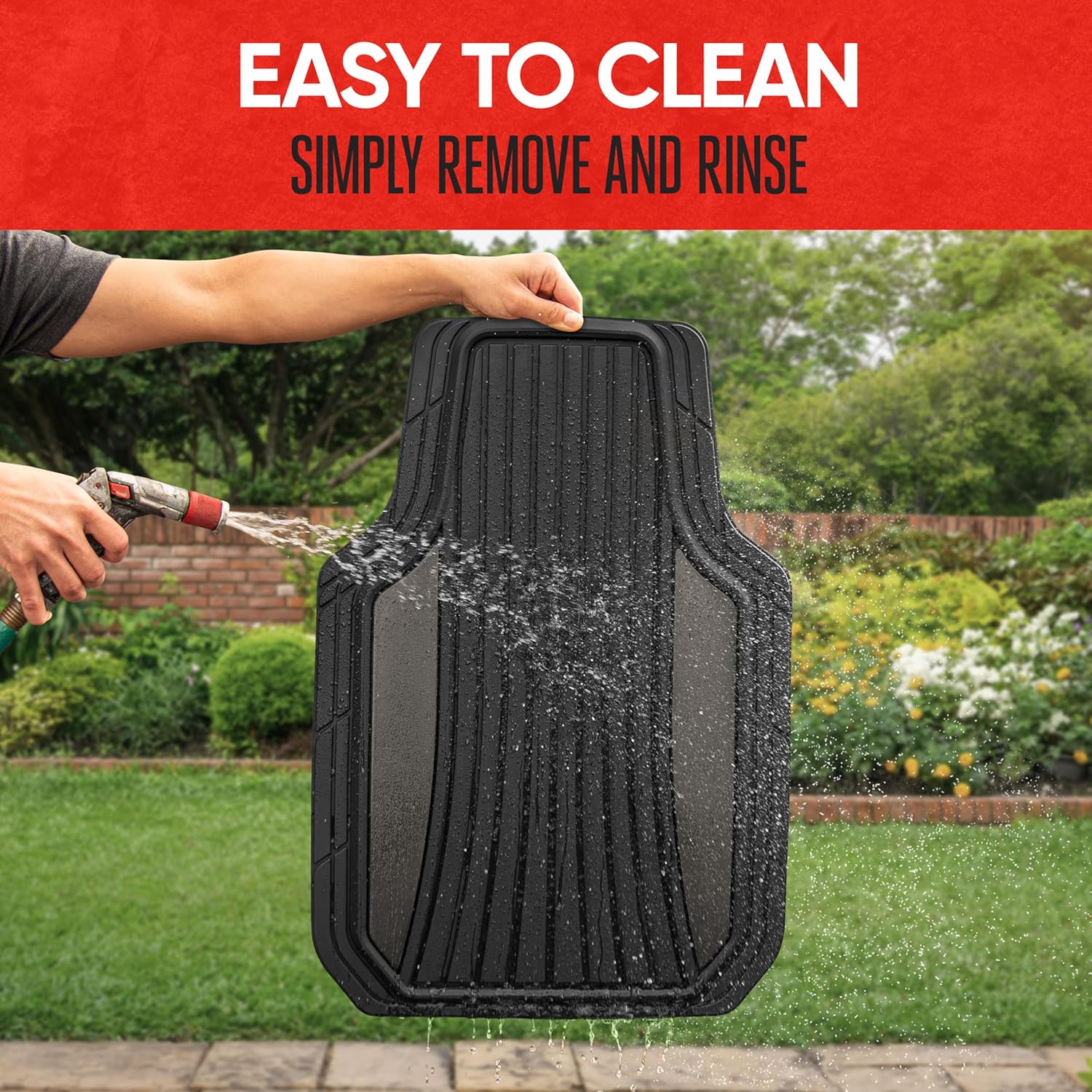 - NON-SLIP AND EASY TO CLEAN – The non-slip backing keeps the rubber car floor mats securely in place while driving. Simply remove and hose off the car floor mats all weather style for effortless maintenance—perfect car supplies for daily drivers.