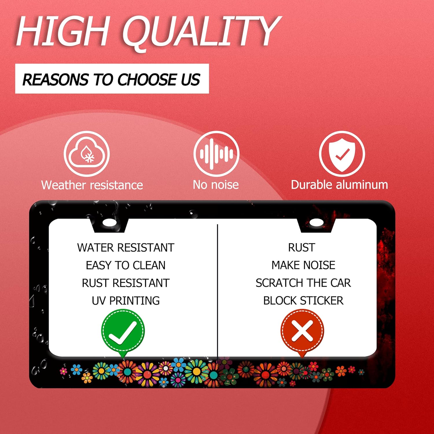 Colorful Hippie Flowers License Plate Frame Beautiful Floral License Plate Frames Stainless Steel Accessories Cars Decor with 2 Holes and Screws Fits Standard US CA Vehicles Size 12.2 x 6 Inches